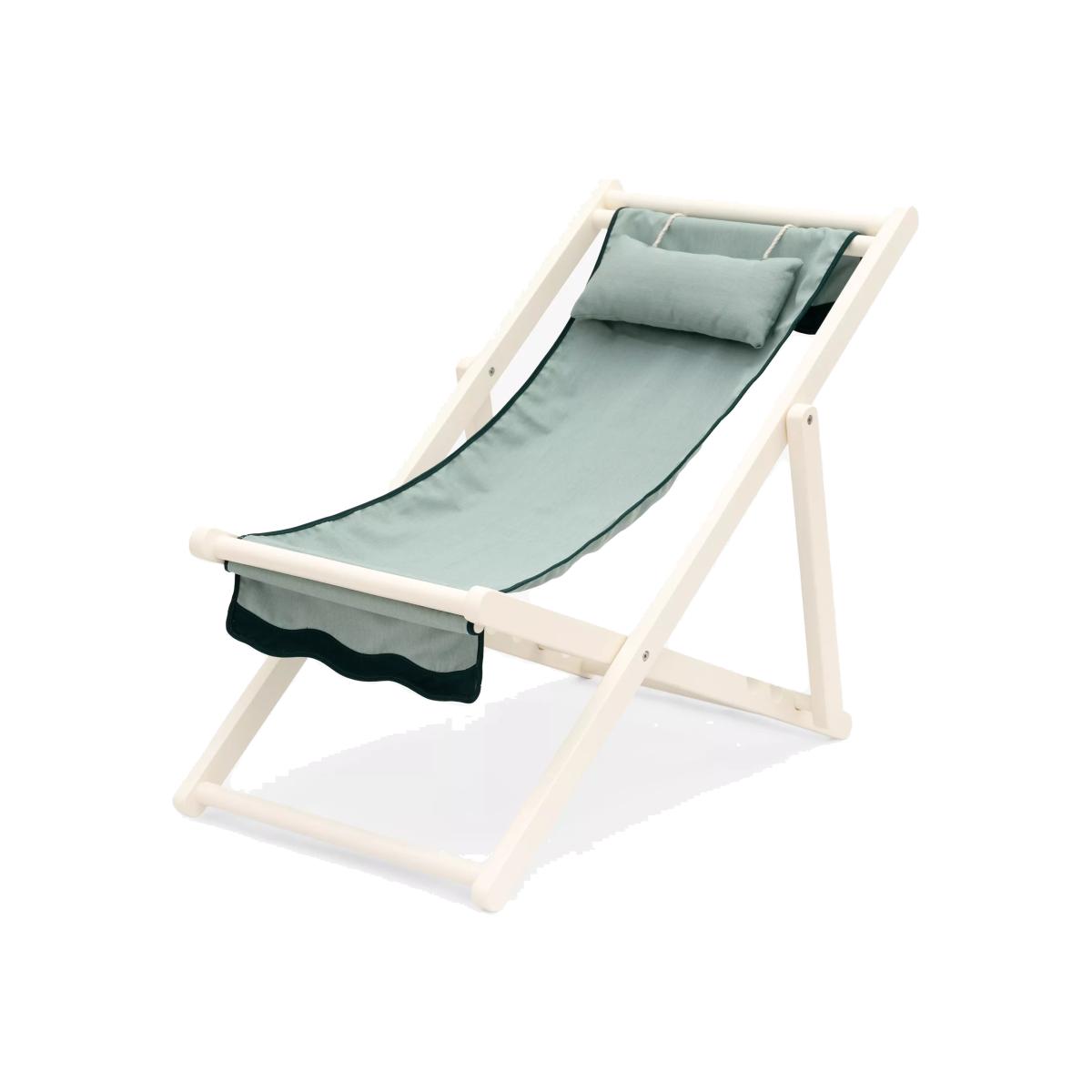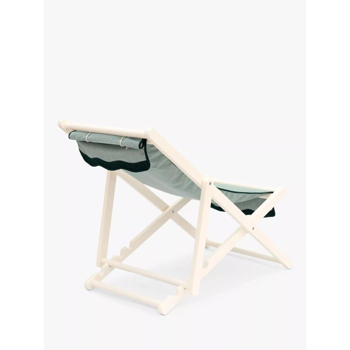 Your classic deck chair, just more beautiful. Featuring Business & Pleasure Co.'s signature scalloped edge, adding comfort and class to any patio, beach or garden. Compact when folded, it's easy to set up and pack up. Weather-resistant fabric Made with the brand's Pleasuretex® fabric, a signature vintage-look canvas that's UV, mould and water-resistant. Removable to wash or replace when needed. Weather-resistant frame Premium, painted teak wood frame including a weather-resistant coating Rest easy Easy to set up ready for relaxation in under a minute. Includes a cushioned headrest and multiple reclining positions.