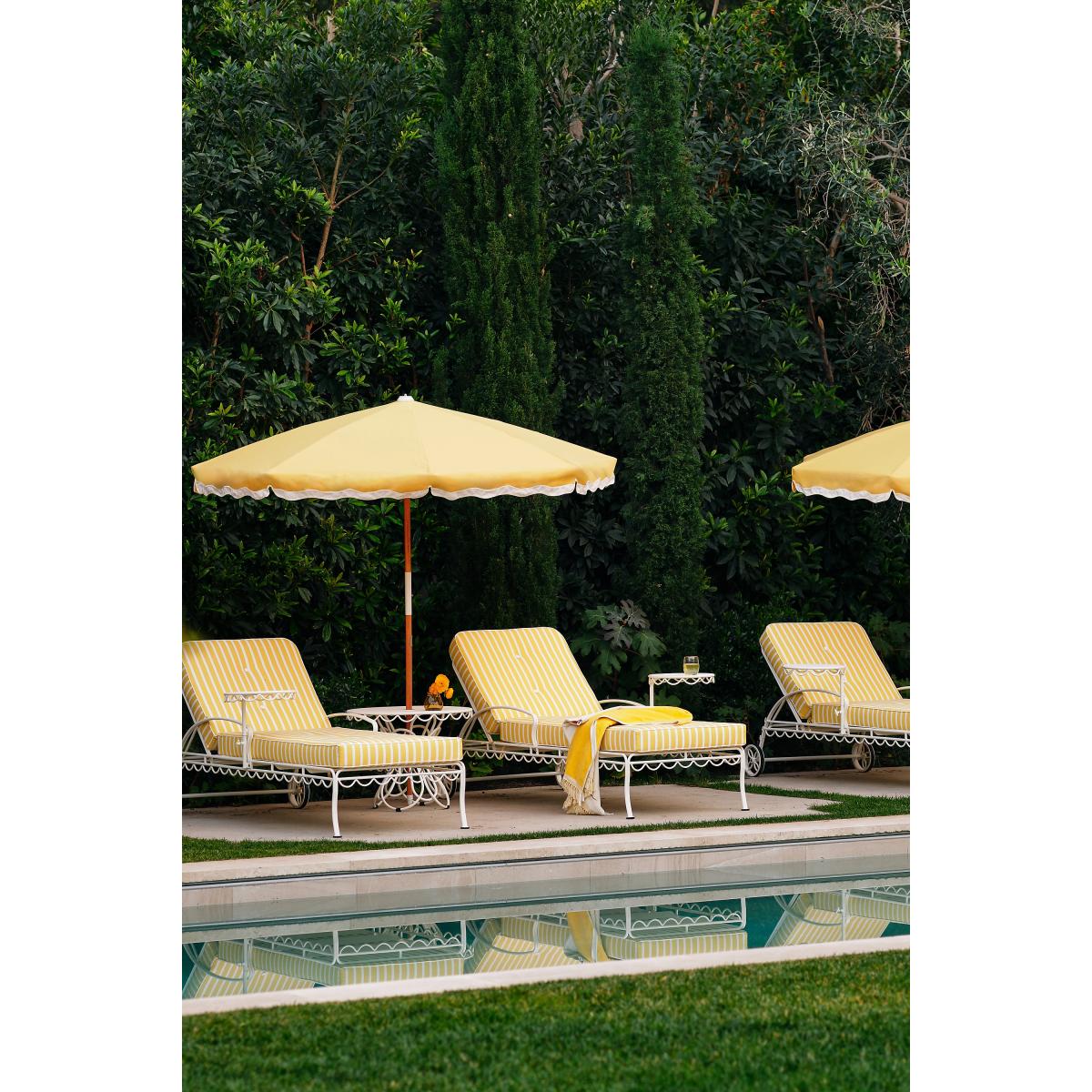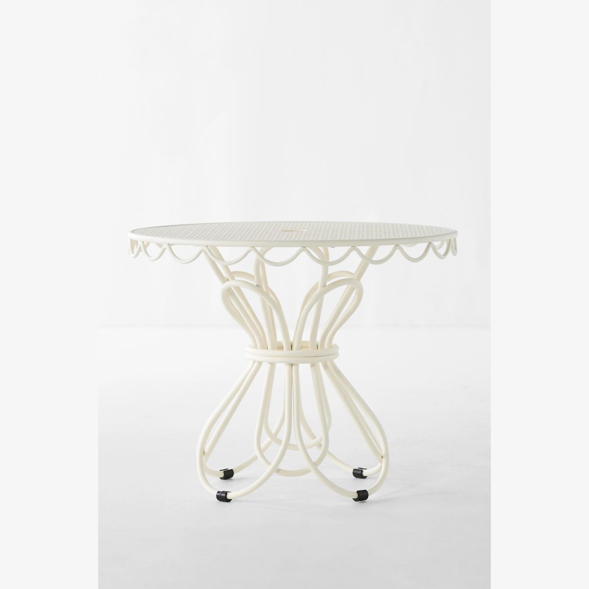 With its curving lines and round silhouette, the Al Fresco Side Table adds a graceful femininity anywhere from a small back porch to an at-home poolside retreat. * By Business & Pleasure Co. * Steel frame; high-grade coating * This piece is suitable for indoor or outdoor use * Features 48mm umbrella hole * Compatible with any umbrella base * Wipe clean with damp cloth * Cover or store indoors during inclement weather or when not in use * No assembly required * Imported