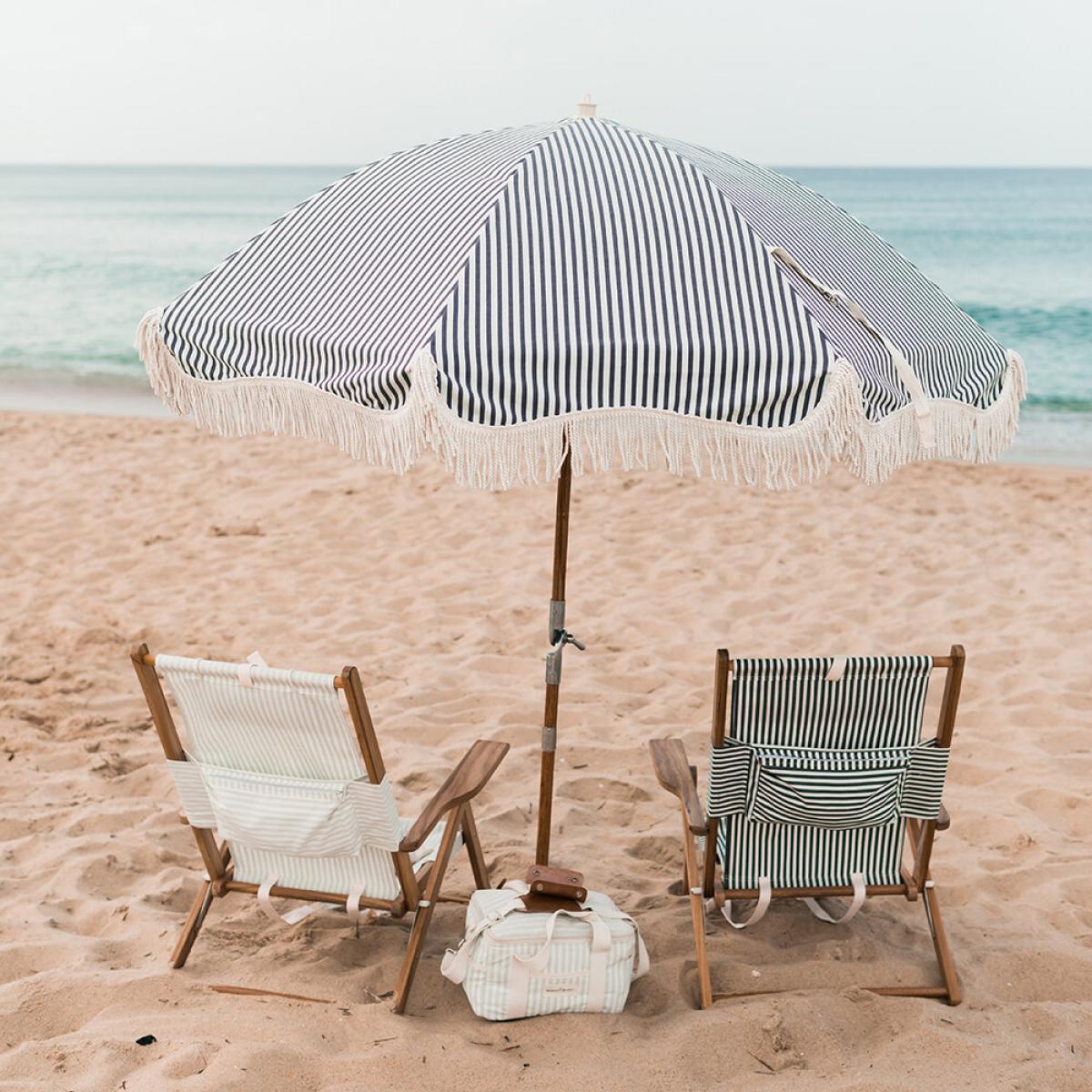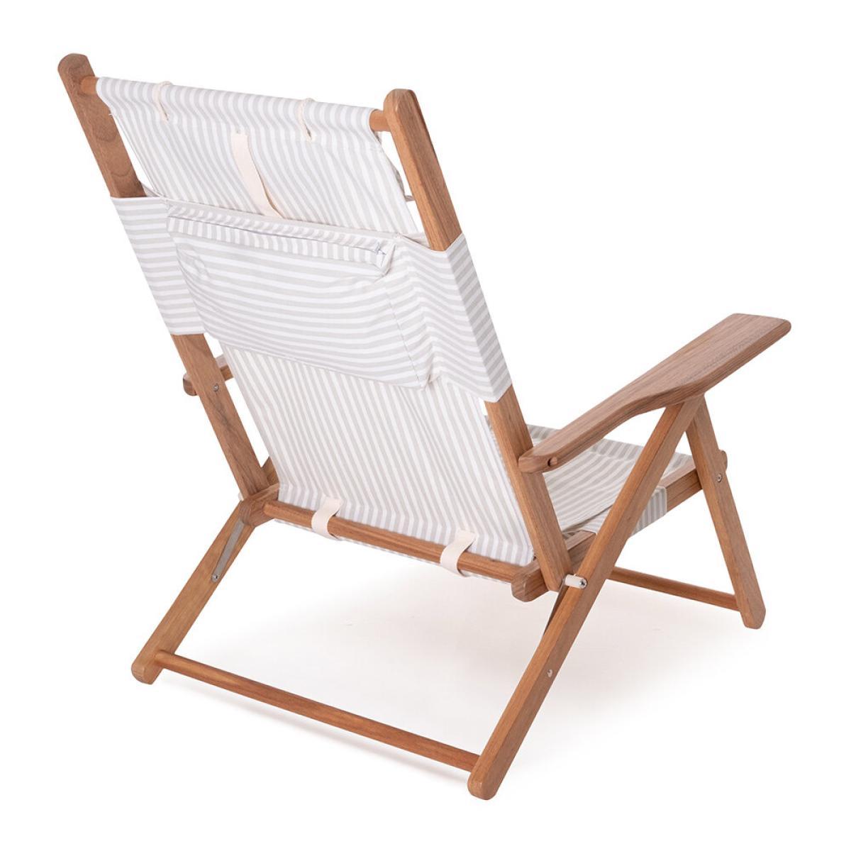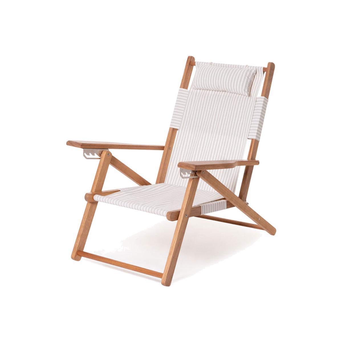 Add laidback vibes to your next beach or pool day with The Tommy Chair from Business & Pleasure Co. The ultimate in beach comfort, this deck chair has three reclining positions and a soft canvas seat with padded headrest. Perfectly portable, it has padded carry straps too.