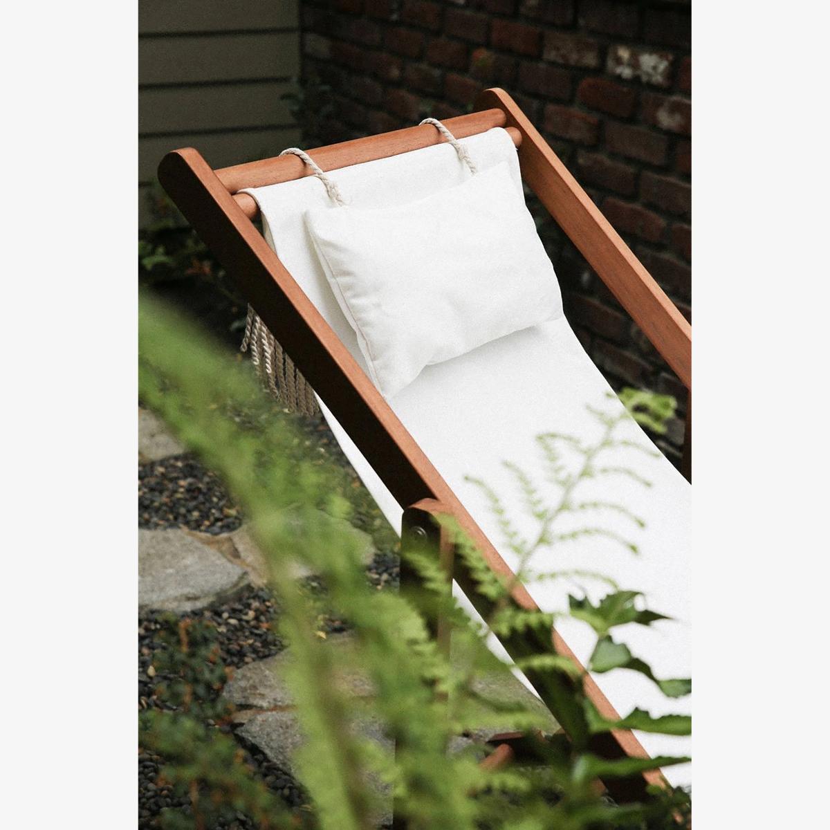 Treated to a mould and water-resistant coating, the canvas of this swing chair makes it perfect for setting up in the garden for family and friend-filled parties, or packing into the back of the car when you're heading to the beach on summer's sunniest days. * Furniture pieces weighing over 30kg include delivery to your room of choice and packaging removal * Online only * By Business & Pleasure * Premium hardwood frame; stainless steel * Weather-resistant coating * UV, mould and water-resistant canvas * Store indoors when not in use to preserve its beauty * Avoid use of chemicals, clean with a mild, soapy water
