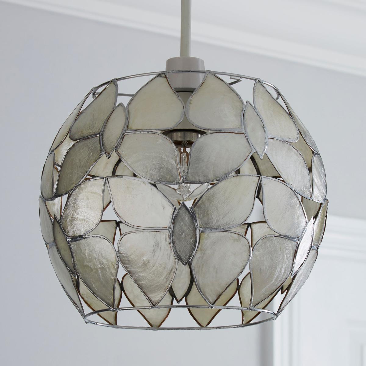 Bring an elegant, decorative touch to your room with our butterfly patterned ceiling pendant. Designed with a pattern of pearlised capiz butterflies in a subtle pearlescent tone, this ceiling light will create an inviting atmosphere to any interior space.