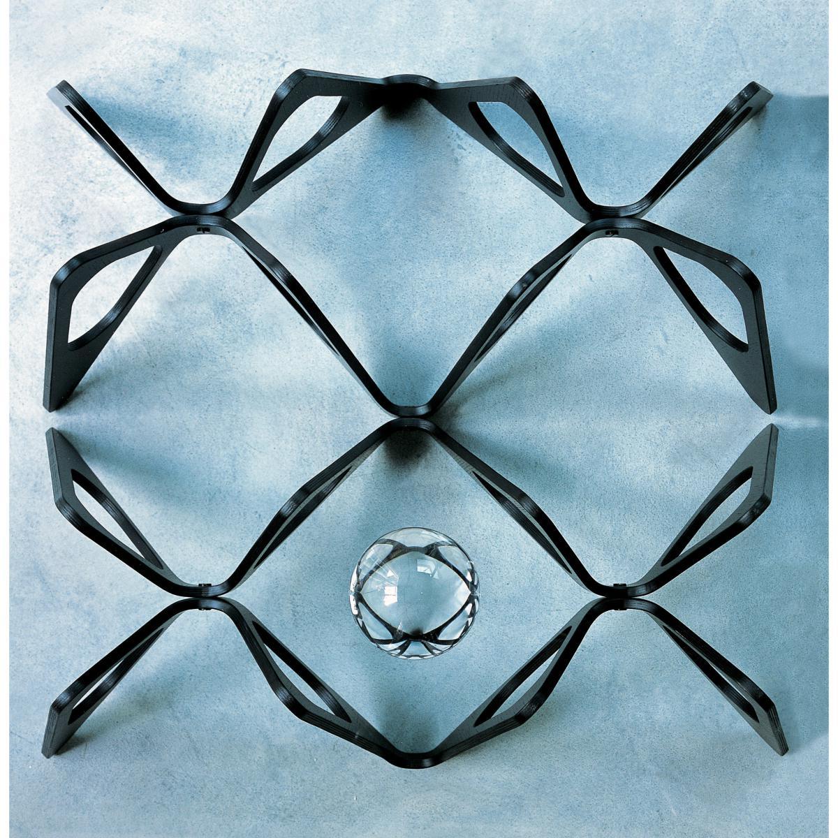 "The butterfly coffee table has a base frame intricately designed and constructed of bent plywood and veneered in a black painted or white painted oak. The wonderful versatility of the base frame is that it can be flipped over so that the wider part or the narrower part can support the. 39" thick tempered plate glass top. ".