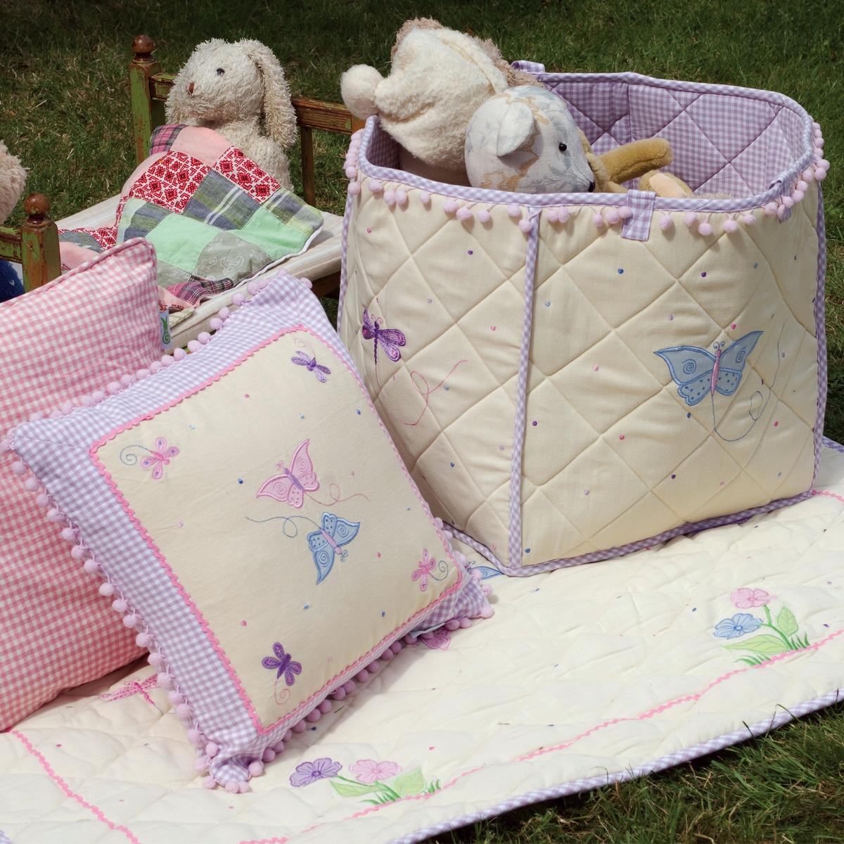 I love this little butterfly cottage quilt as a charming addition to child-friendly spaces or casual nurseries. Its soft pastel colours and delicate embroidery bring a subtle sweetness to the room without overwhelming the decor. It works particularly well layered over a neutral rug or carpet, adding a touch of cosy charm while providing a practical, wipeable surface that’s easy to keep clean. For styling tips, consider pairing it with vintage or rustic furniture to enhance its quaint appeal, or use it to add a playful yet soft accent in a minimalist setting. It's perfect for creating a sweet corner or as an extra layer of warmth in a cosy reading nook.