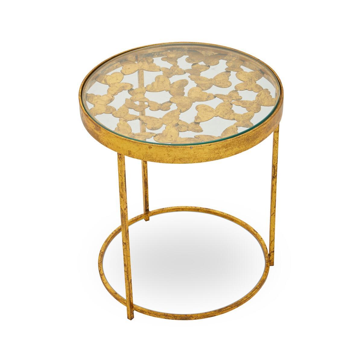 Butterfly Design Side Table with Glass Top and Gold Frame