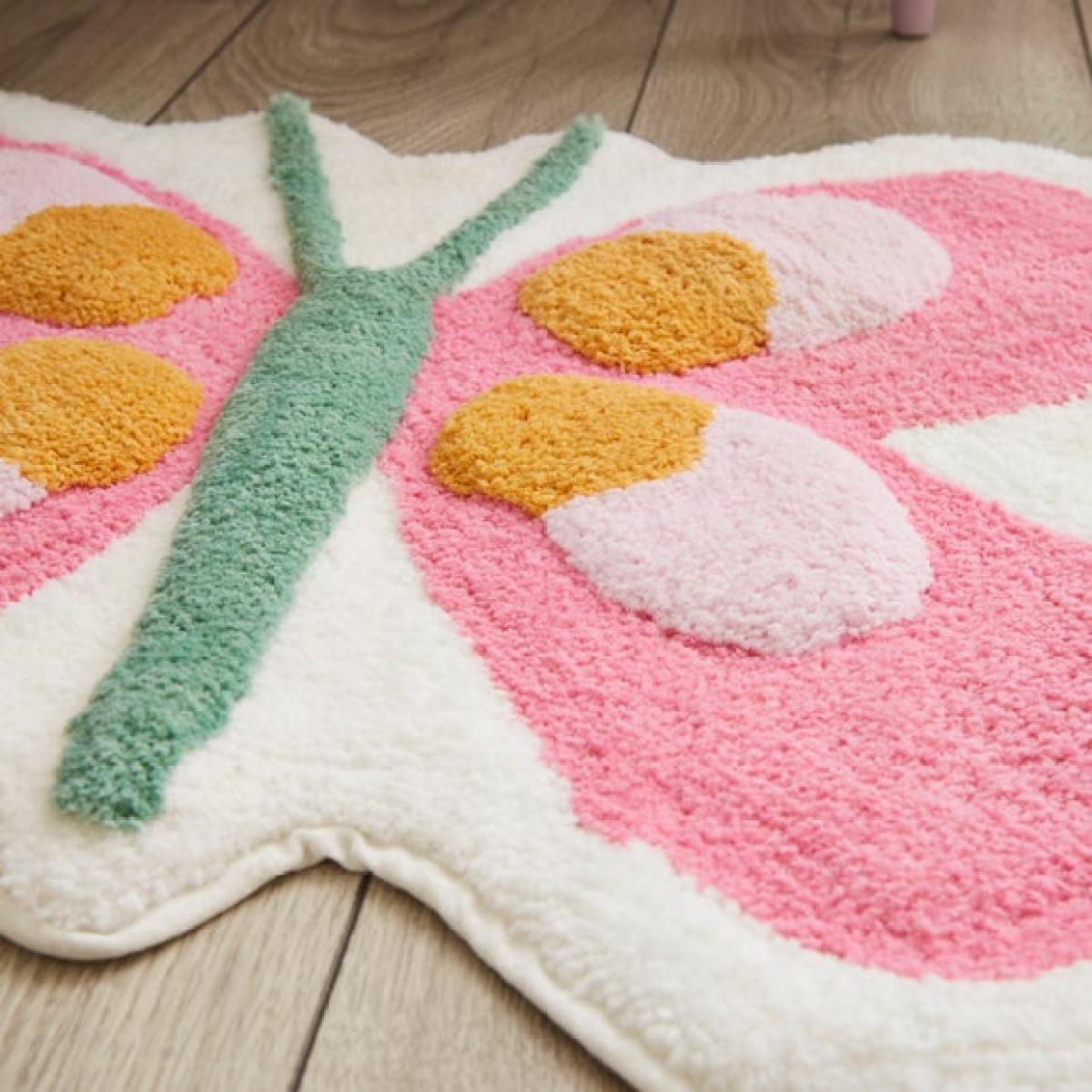 * Beautiful butterfly design * Machine washable * Super soft material Bring a fluttering of colour into your little one's room with this adorable tufted Butterfly Rug. Featuring delightful 3D design elements, it adds a playful, eye-catching touch to any room. Crafted from super soft material, it’s a joy to walk on and perfect for cosy moments. Plus, it’s machine washable, making it easy to keep fresh and vibrant. Bright, bold colours brighten up your space effortlessly. A lovely statement piece that’s as practical as it is pretty.