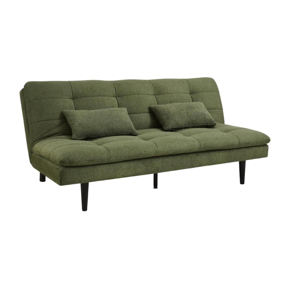 Introducing the Butterfly sofa bed. Butterfly features tufted detailing on the seat and backrest, with a sleek armless silhouette; it stands on black tapered legs. Butterfly is available in orange, green or teal linen fabric. Keep your sofa looking great by vacuuming it once a week on a low setting using the upholstery attachment of your vacuum cleaner or using a soft hand brush to fluff up the fibres. Regularly plump and fluff cushions to maintain their shape and prevent sagging. Be mindful of food and drinks around your sofa bed. If spills occur, clean them up immediately to prevent stains. Overall Product Dimensions: W186cm x D100cm x H86cm / Sleeping Area: W186cm x D118cm x H45cm. All sizes are approximate; please allow for small variations. Package Dimension: Box 1 W189cm x D121cm x H23cm / Total Packaging Weight: 40kg. All sizes are approximate; please allow for small variations. Delivered by our friendly couriers within 1-3 working days. The courier will deliver to the main door of the building only on an all-day 7 am to 7 pm service, with no time slots provided.