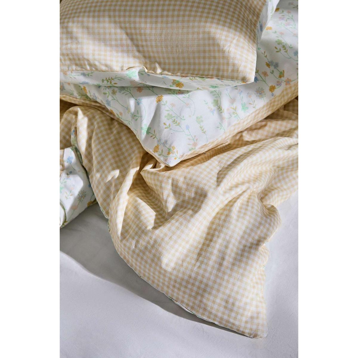 Sweet bedding set with a ditsy floral print and yellow check pattern on the reverse. Crafted from cotton, it includes a duvet cover and matching pillowcases. **About Better Cotton** \- By choosing our cotton products, you’re supporting our investment in Better Cotton’s mission- This product is sourced via a system of mass balance and therefore may not contain Better Cotton- Bettercotton.org/massbalance **Content + Care** \- 100% Cotton- Machine wash **Size** \- Pillowcase: 75cm x 50cm- Single (includes 1 pillowcase): 135cm (W) x 200cm (H)- Double (includes 2 pillowcases): 200cm (W) x 200cm (H)- King (includes 2 pillowcases): 230cm (W) x 220cm (H)