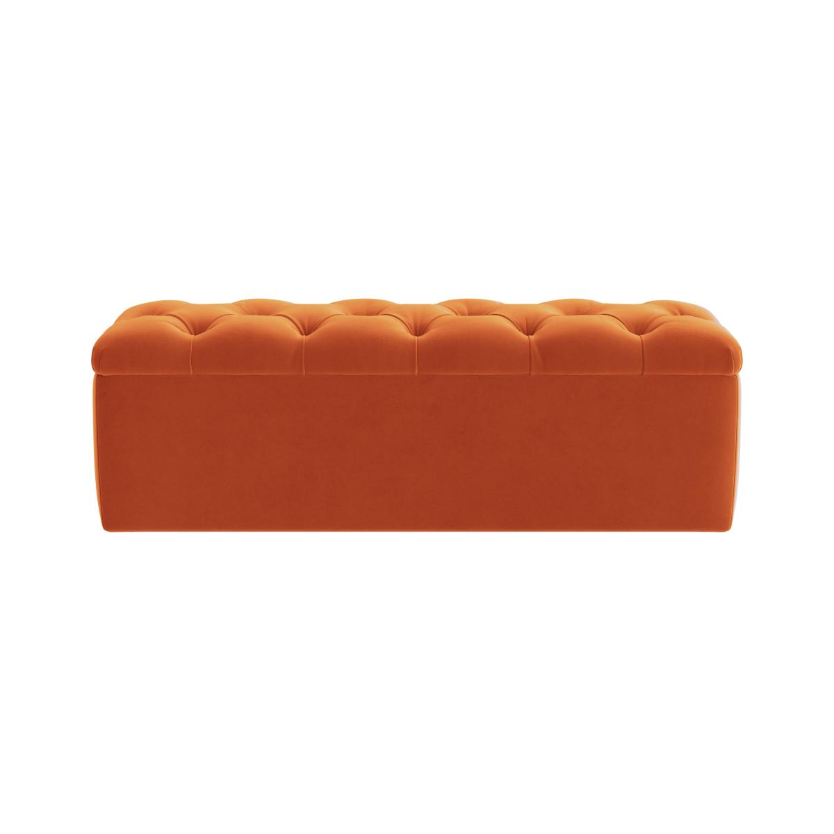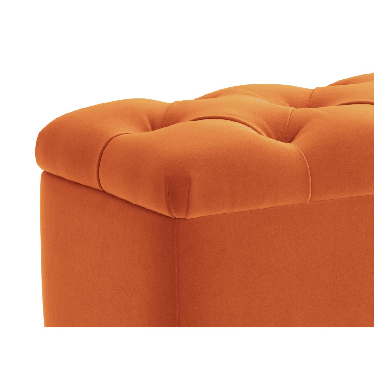 I love this ottoman because it combines practical storage with stylish comfort, making it a versatile piece for many interiors. Its button-topped design adds texture and visual interest, which works particularly well in both modern and vintage-inspired spaces. It’s ideal for entryways, living rooms, or bedrooms, providing extra seating as well as handy storage for blankets, cushions, or magazines. When styling, consider pairing it with neutral or contrasting colours to create focal points, or incorporate it into a layered look with rugs and throw pillows for a cosy, inviting feel. Its bold colour can add a pop of personality to more subdued interiors, making it a functional statement piece.