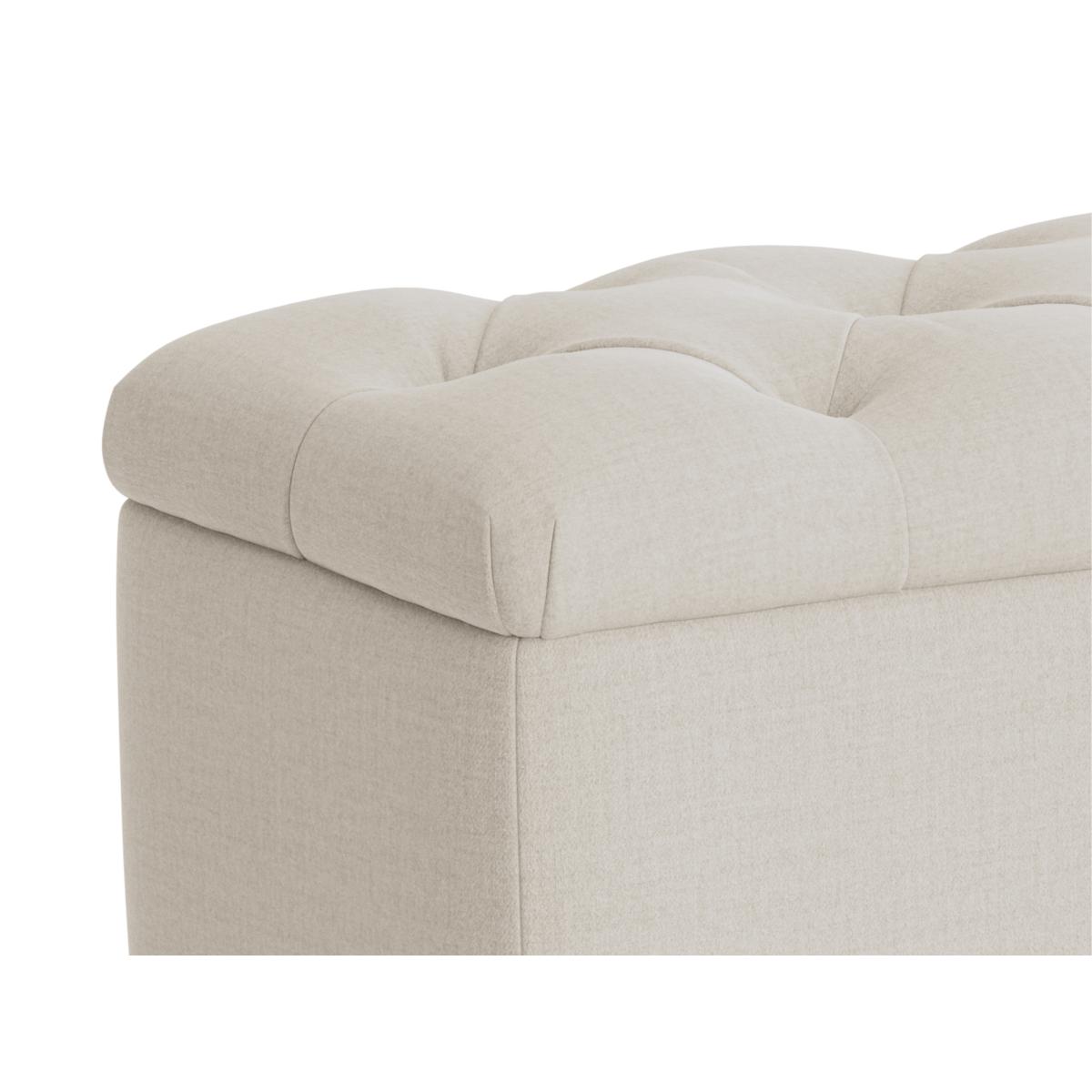 This button top ottoman is a versatile piece that works well both as extra seating and storage in a variety of interiors, from traditional to contemporary. I love its clean, understated design paired with the plush padded top, making it both stylish and practical. It’s perfect in a hall or at the foot of a bed, where it can serve as a functional storage solution while adding a touch of elegance. For styling, consider layering it with textured cushions or placing it alongside a statement armchair for a cosy, inviting look. Its neutral colour makes it flexible to incorporate into colour schemes and styles, and it’s also a smart choice for keeping clutter out of sight in shared living spaces.
