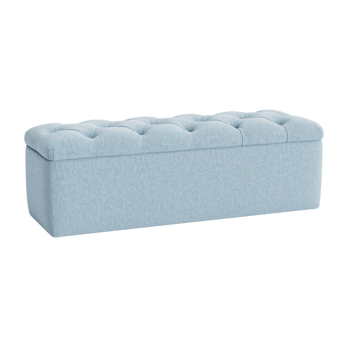 I love this button top ottoman as a versatile addition to both classic and contemporary interiors. Its upholstered, tufted design adds a touch of elegance without feeling too formal, making it perfect for a hallway, foot of the bed, or living room. The storage function is practical, ideal for stashing blankets, cushions, or magazines, helping to keep spaces tidy. When styling, consider pairing it with a contrasting rug or placing it beside a sofa to create a cosy, inviting spot for putting on shoes or relaxing. Its soft colour makes it easy to incorporate into neutral palettes, but it can also serve as a subtle splash of colour in more playful or eclectic schemes.