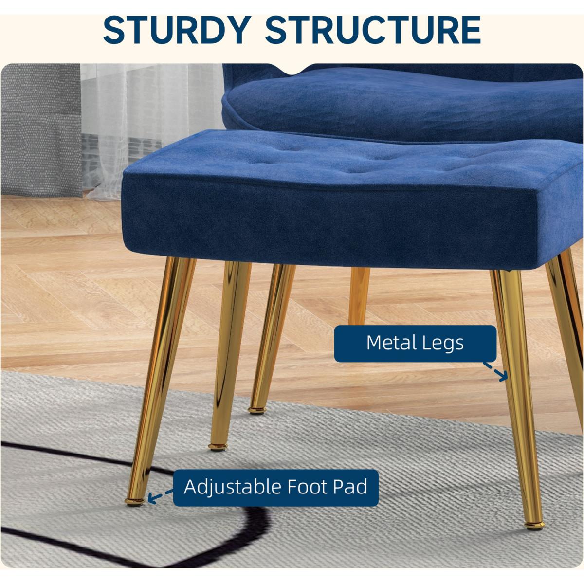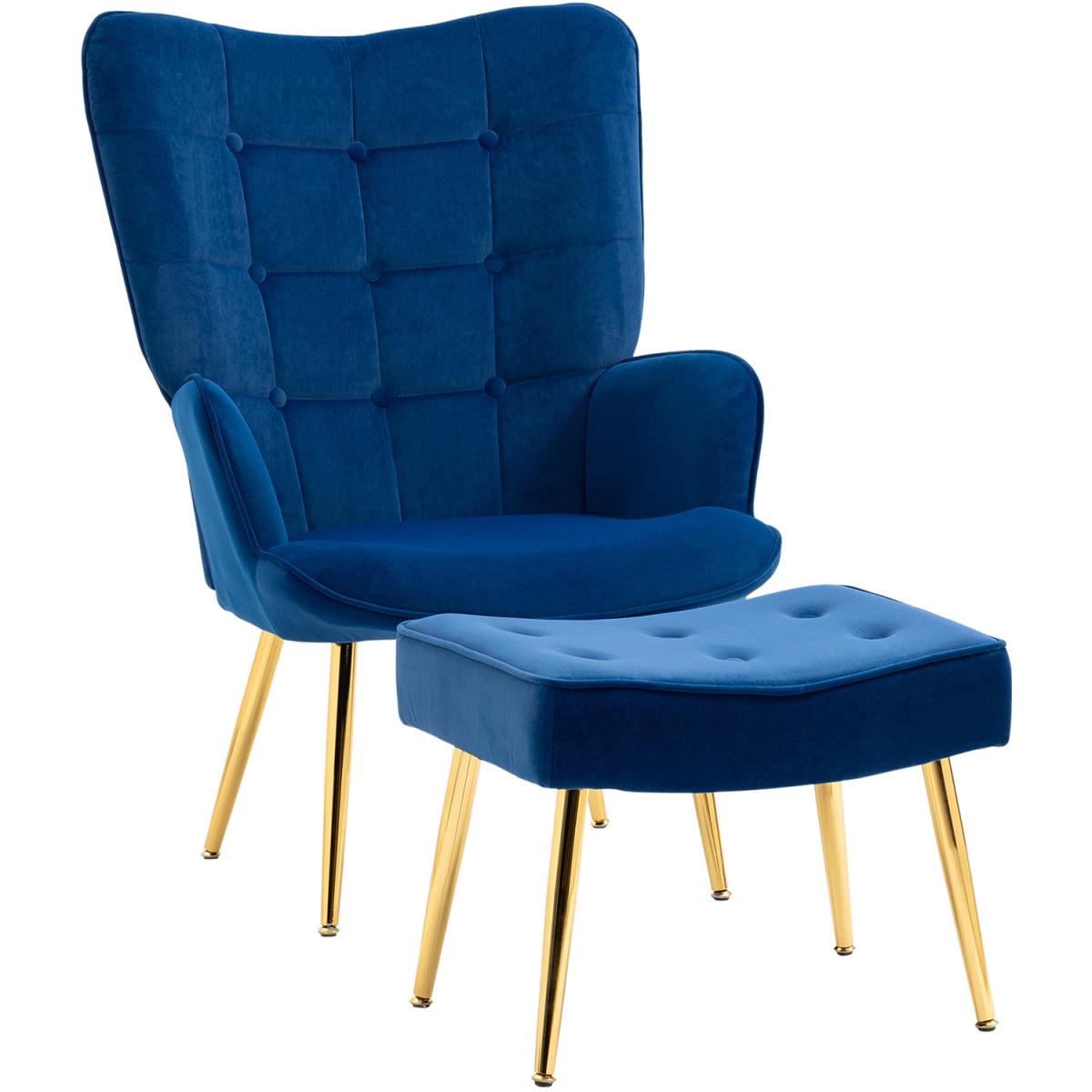 Button Tufted Armchair with Footstool with Steel Legs 839-778V70DB - Blue