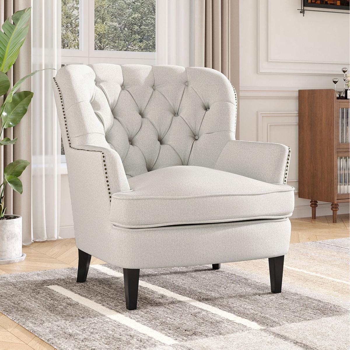Are you searching for an armchair that blends beauty with practicality? This modern button-tufted linen armchair is sure to make a statement in your interior. Featuring a linen button-pulled pleated back and rivet trim, it not only provides a comfortable backrest but also showcases a contemporary design aesthetic. The generously padded seat and backrest ensure optimal comfort, while the premium linen fabric offers a soft and inviting seating experience.