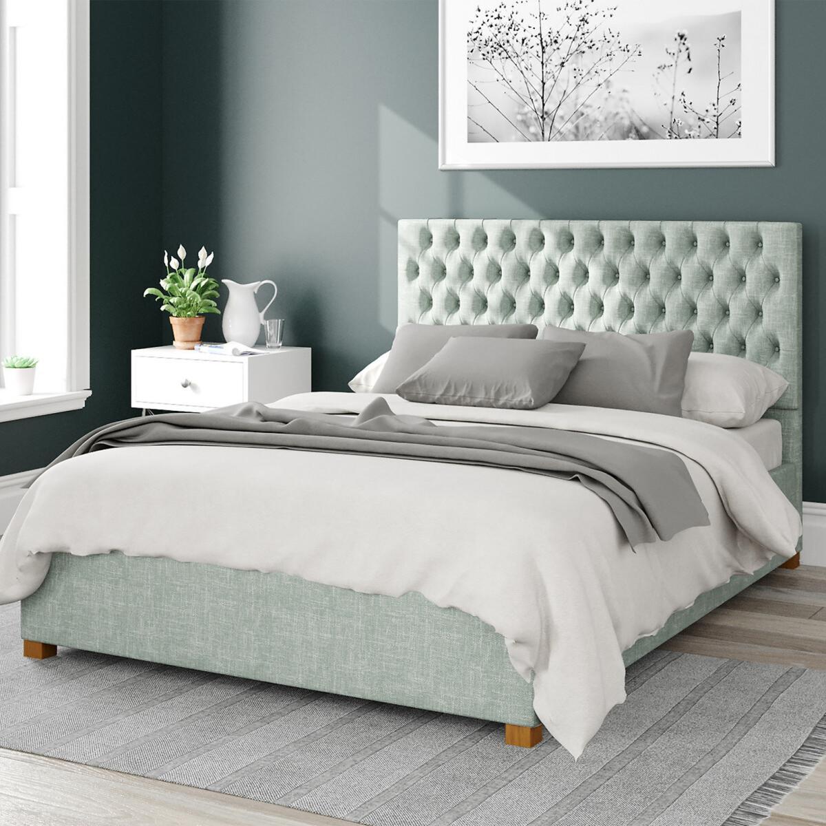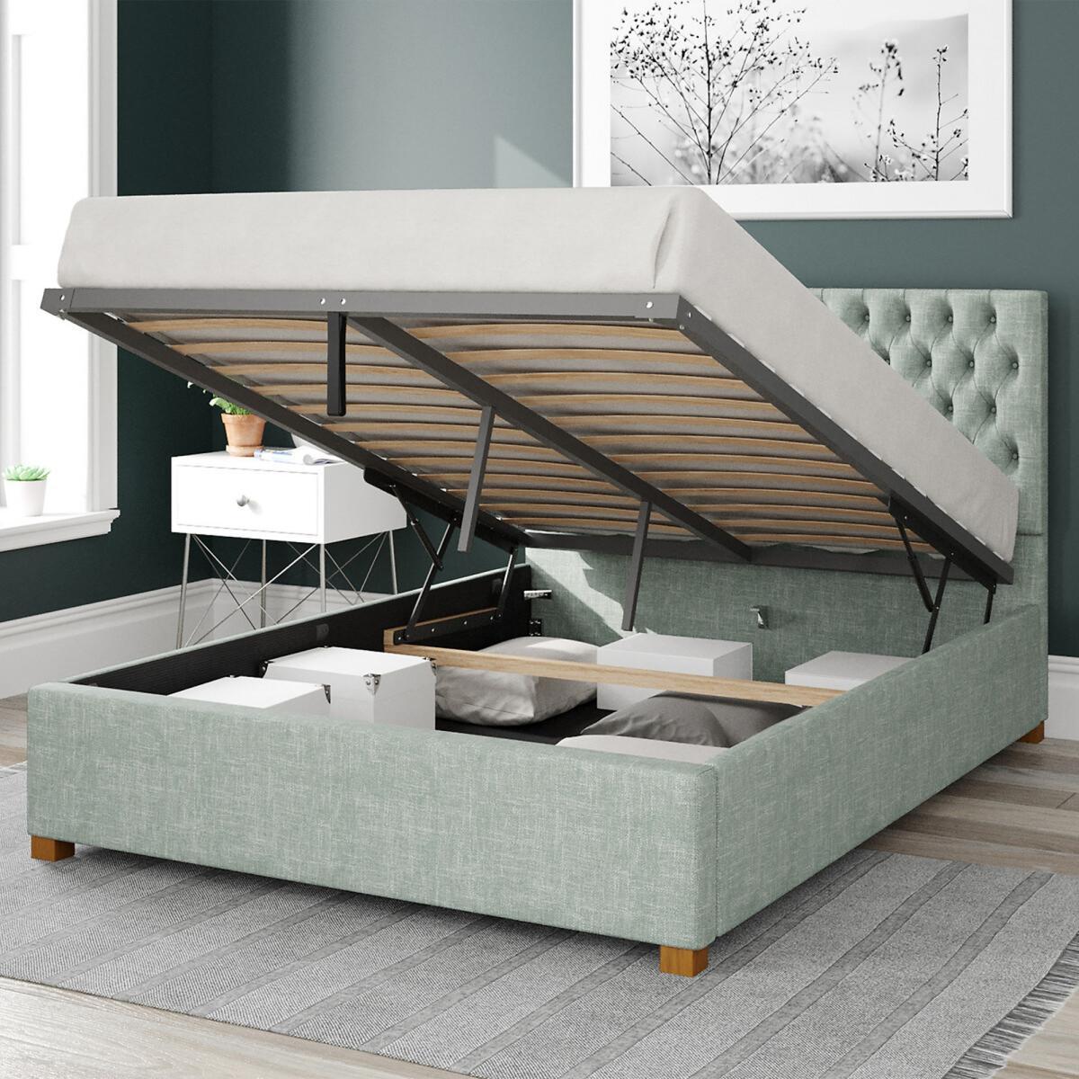 Please note: this product cannot be delivered to all Offshore Islands, Northern Island or Republic of Ireland. This product will be dispatched by one of our trusted suppliers. You’ll be contacted by their selected courier about your delivery. Please note this item will be delivered to your doorstep. Quality upholstered ottoman storage bed, hand crafted in the UK.Each headboard is constructed with deep foam padding perfect for sitting up in bed and reading. We believe quality has no short cuts, meaning all our designs are hand upholstered by our skilled craftsmen. Our UK ottoman design features chunky upholstered panels, which means it is built to last. Quality sprung slats improve comfort and mattress lifespan. The easy lift ottoman mechanism is supported with quality gas pistons, enabling the storage to be accessed with minimal effort. Once the ottoman is elevated it will hold position, allowing hands free access to storage. Our ottomans offer the perfect storage solutions for rooms with no or limited space with a spacious storage area of approximately 28cm. The fabric base attaches to the underside of the bed, protecting your stored items. Self Assembly Required. Swatch service: We offer a FREE swatch service. Please email samples@aspire-furniture.co.uk and include the below information:Please include 'La Redoute' in the title of your email. Name and address:Product: Monroe Ottoman Bed. Fabric: Pure Pastel Cotton Colour: (in order to receive the correct colour please use the table below to identify correct reference)Your swatches will be delivered within 10 working days (subject to availability) Colour Description Colour to Request Pale green Eau De Nil Storm Storm Tea Rose Tea Rose Product Dimensions: Single: 112cmx100cmx209cm. Small Double:112cmx130cmx209cmDouble:112cmx147cmx209cmKing:112cmx160cmx219cm Super King:112cmx190cmx219cm. Please remember to measure your available space before ordering. Single: Parcel 1 Packaged Dimensions 140cmx 113cmx 12cm Weight: 12kg Parcel 2 Packaged Dimensions 212cmx 32cmx 19cm Weight: 13kg Parcel 3 Packaged Dimensions 240cmx 180cmx 12cm Weight: 18kg. Small Double:Parcel 1 Packaged Dimensions 140cmx 113cmx 12cm Weight: 19kg Parcel 2 Packaged Dimensions 212cmx 32cmx 19cm Weight: 17kg Parcel 3 Packaged Dimensions 240cmx 180cmx 12cm Weight: 22kgDouble: Parcel 1 Packaged Dimensions 171cmx 113cmx 12cm Weight: 22kg Parcel 2 Packaged Dimensions 212cmx 32cmx 19 cm Weight: 18kg Parcel 3 Packaged Dimensions 240cmx 180cmx 12cm Weight: 23kgKing:. Parcel 1 Packaged Dimensions 171cmx 113cmx 12cm 27 Weight: 27kg Parcel 2 Packaged Dimensions 212cmx 32cmx 19cm Weight: 22kg Parcel 3 Packaged Dimensions 240cmx 180cmx 12cm Weight: 25kg Super King:Parcel 1 Packaged Dimensions 201cmx 113cmx 12cm Weight: 30kg Parcel 2 Packaged Dimensions 212cmx 32cmx 19cm Weight: 25kg Parcel 3 Packaged Dimensions 240cmx 180cmx 12cm Weight: 27kg. Upholstered Fabric Composition: Pastel Cotton Fabric