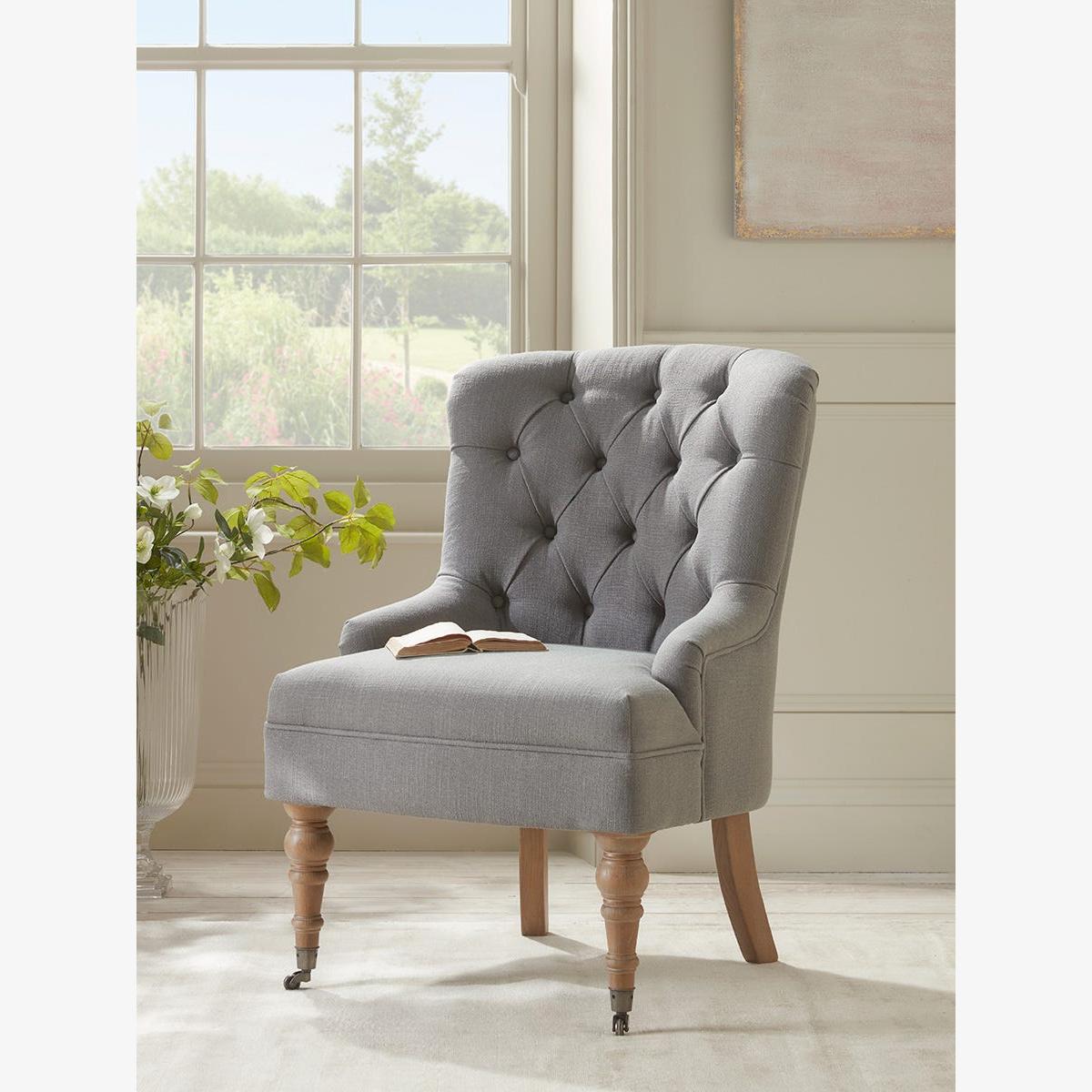 I’m a fan of this button-back chair for its classic tailoring and soft grey linen - it lifts a simple dining table without overwhelming the space. It works equally well in a modern farmhouse kitchen, a pared-back Scandi scheme or a more traditional dining room, especially when paired with warm wood tones or brushed brass accents. For styling, keep the palette neutral and layer in texture with a woven runner or leather-strapped cushion; adding a couple of contrasting seat pads brings both comfort and a touch of colour.