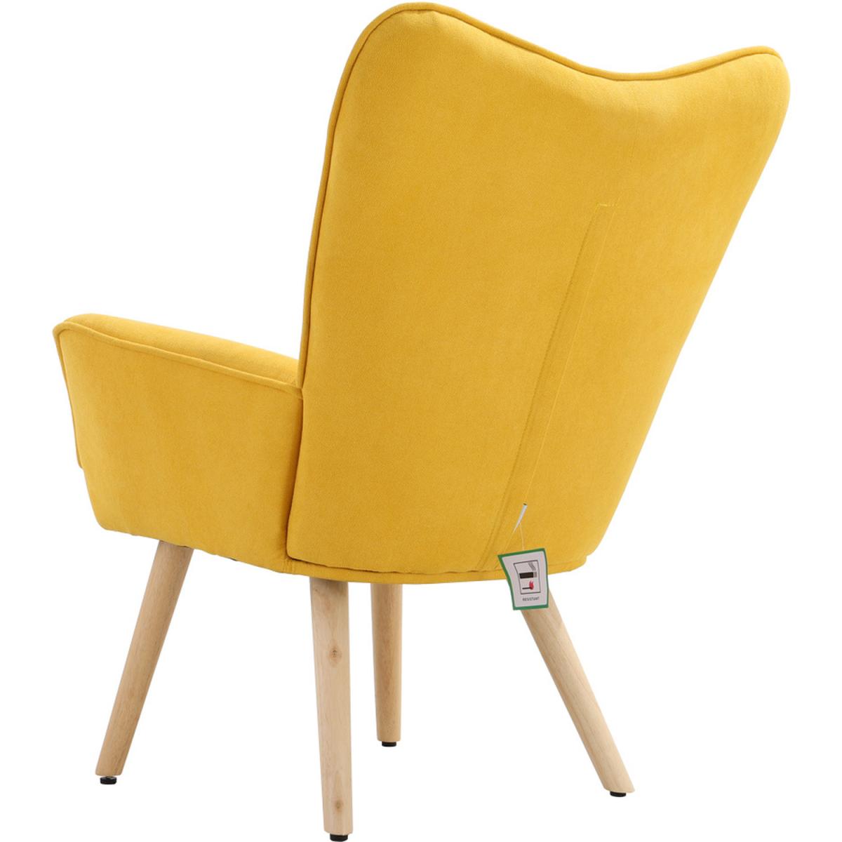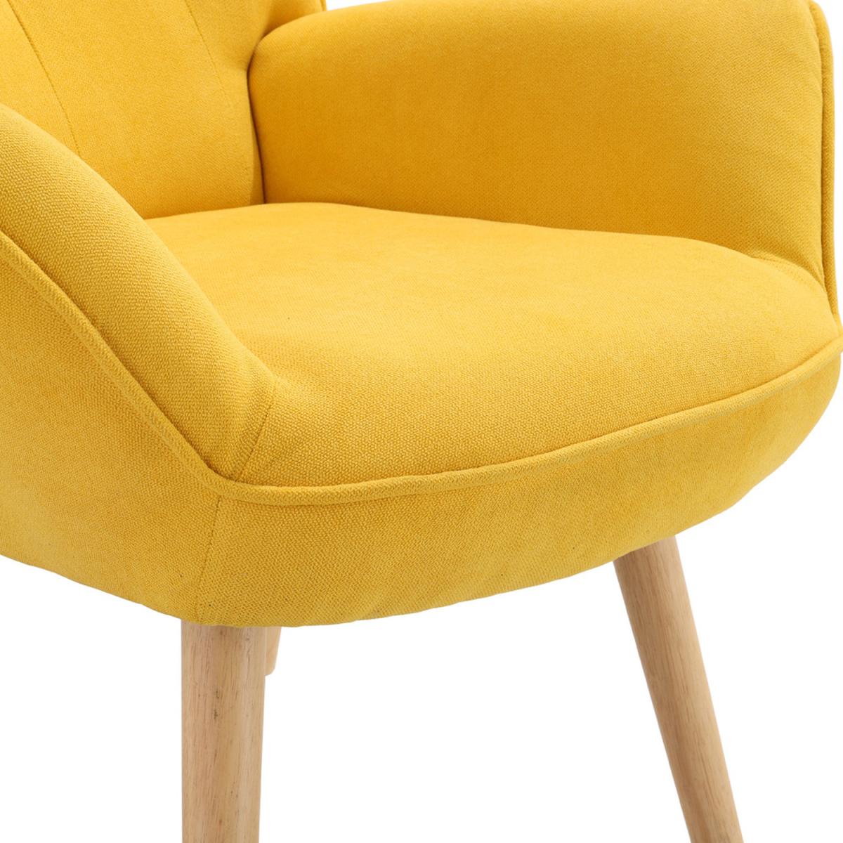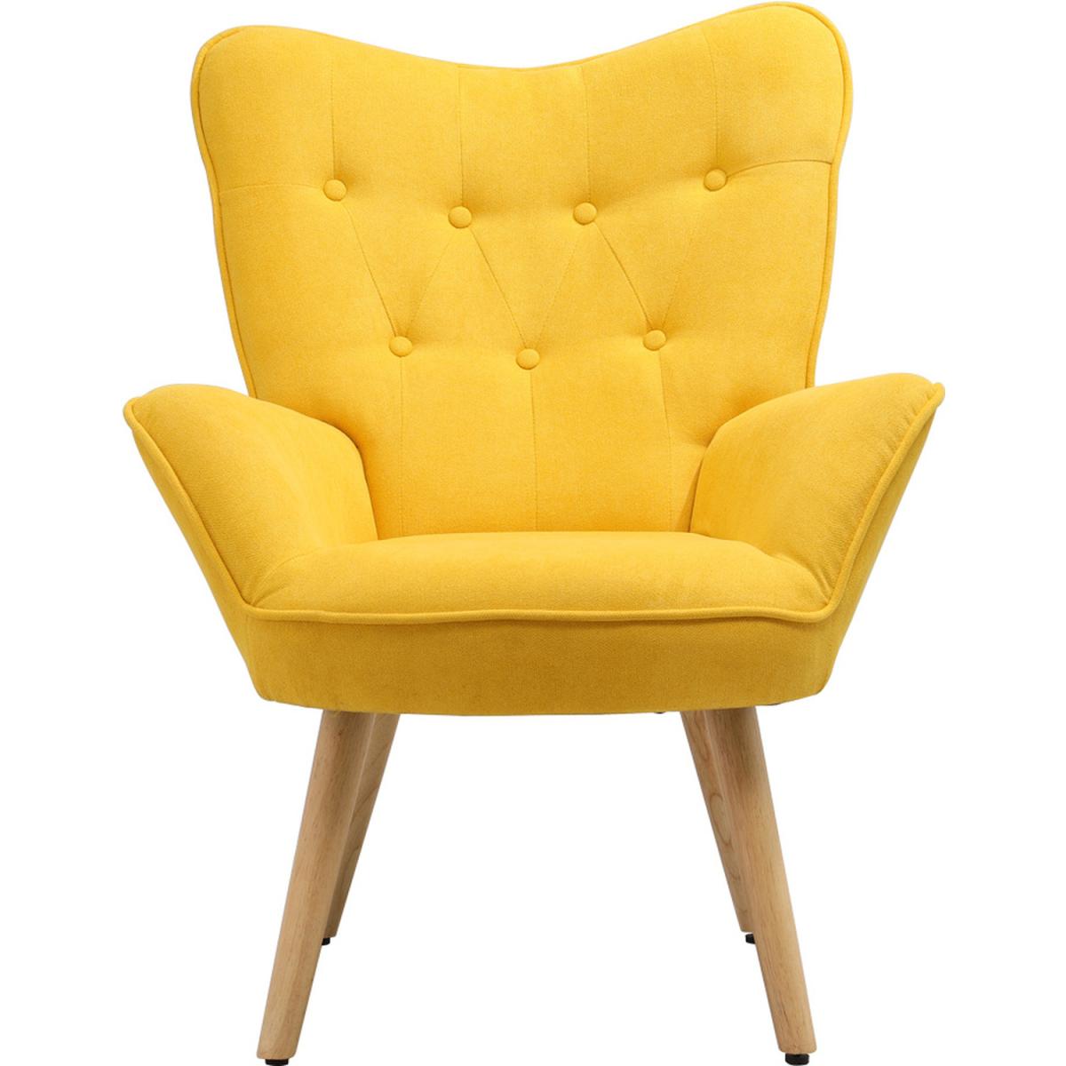 Buttoned Linen Armchair with Wooden Legs - Yellow