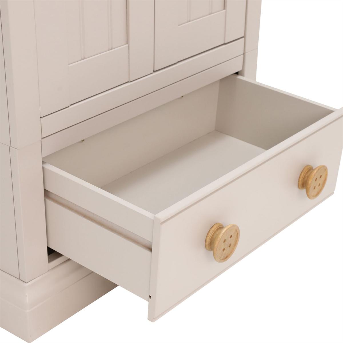 I love this wardrobe for its clean, neutral appeal, making it versatile enough to fit into a range of interiors-from Scandi-inspired schemes with light wood accents to more contemporary, minimalist spaces. Its simple design lends itself well to both modern and traditional settings, especially when paired with natural textures or soft textiles. Practical styling tips include layering with woven baskets or open shelving accessories to add visual interest, and using tactile finishes like soft throws or textured lamps to complement its understated elegance. The combination of the two-door cabinet with a drawer provides functional storage, keeping clutter out of sight while maintaining a sleek appearance.