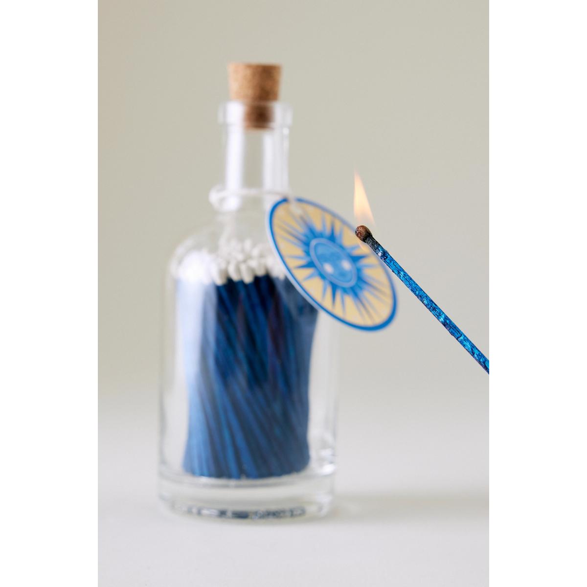 By Anthropologie Glass bottle; printed tag with gold foil Contains 125 matches This item is age-restricted. You must be aged 18 or over to purchase. Made in UK How To Use: Strike away from body. Keep away from children at all times. Store in a cool, dry location, away from heat, open flames or sparks, or flammable materials. Bottle Matches by Anthropologie in Blue