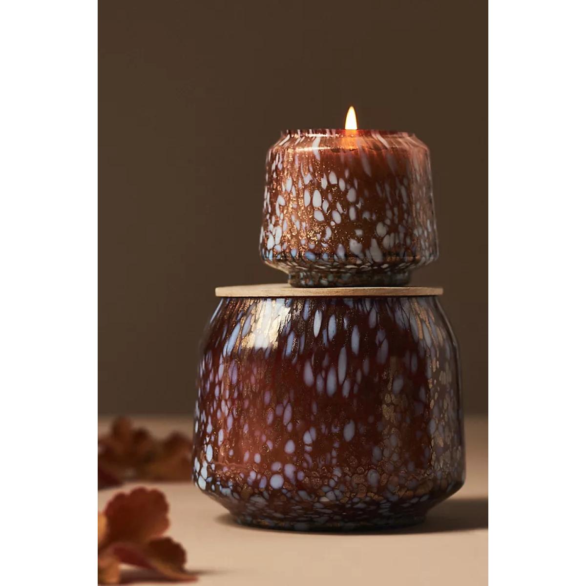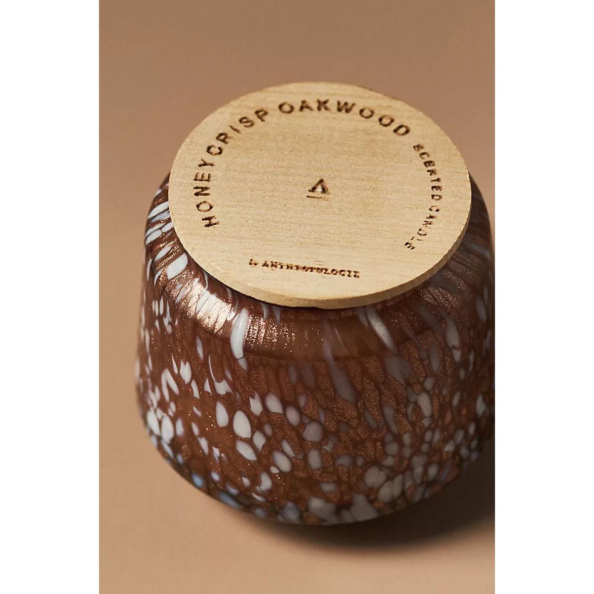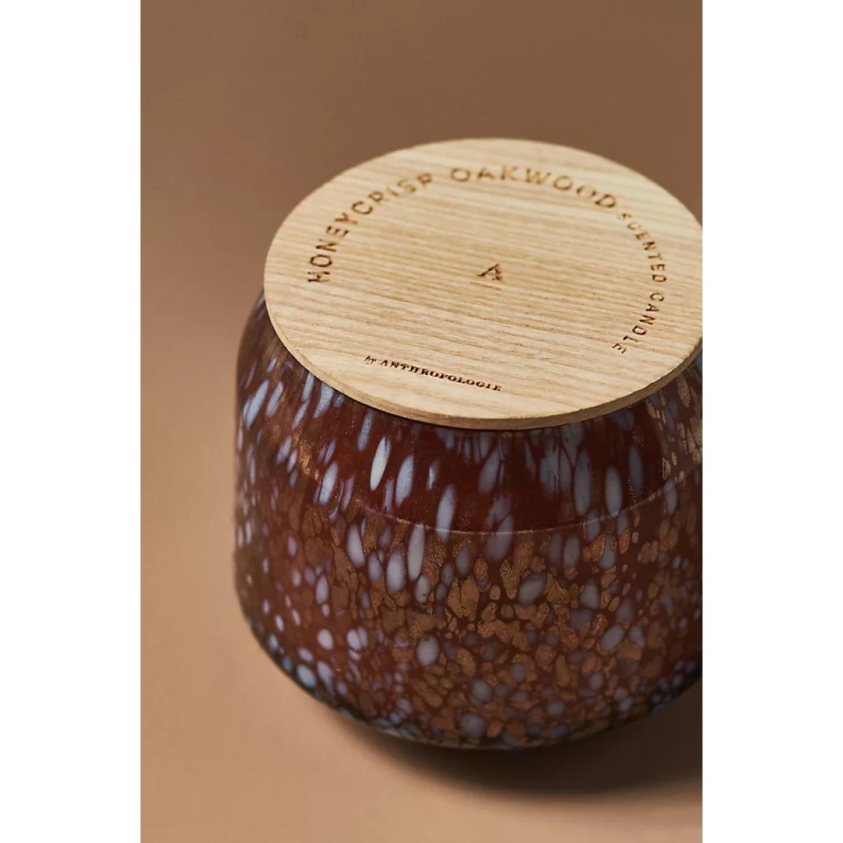 **Honeycrisp Oakwood (Fruity Fresh):** The aromatic scent of crisp, falling leaves over ripe orchard fruits, enhanced with soft oakwood elements and a touch of glowing white amber. *For the best burn experience, keep the following in mind:* * The first time you light your candle, allow it to burn until the wax pool melts all the way to the edge; for a larger candle, this may take several hours. Wax has "memory," so if it is extinguished with a partial pool, that will prevent a full, even pool from forming in the future. * Trim your wick each time you light the candle, removing any "bloom" from the previous burn. We recommend lighting a wick that is 1/4-1/2" in length. * Ensure that your candle is placed on a heat-safe surface. * Do not allow wick trimmings, dust, or other materials to accumulate in the wax pool. * To ensure safety and longevity, be sure to check the bottom of your candle for additional instructions, including details on when to discontinue use. * 31-hour burn time * Plant-based wax blend; fil-tec candle wick * Glass vessel; wood lid * Imported