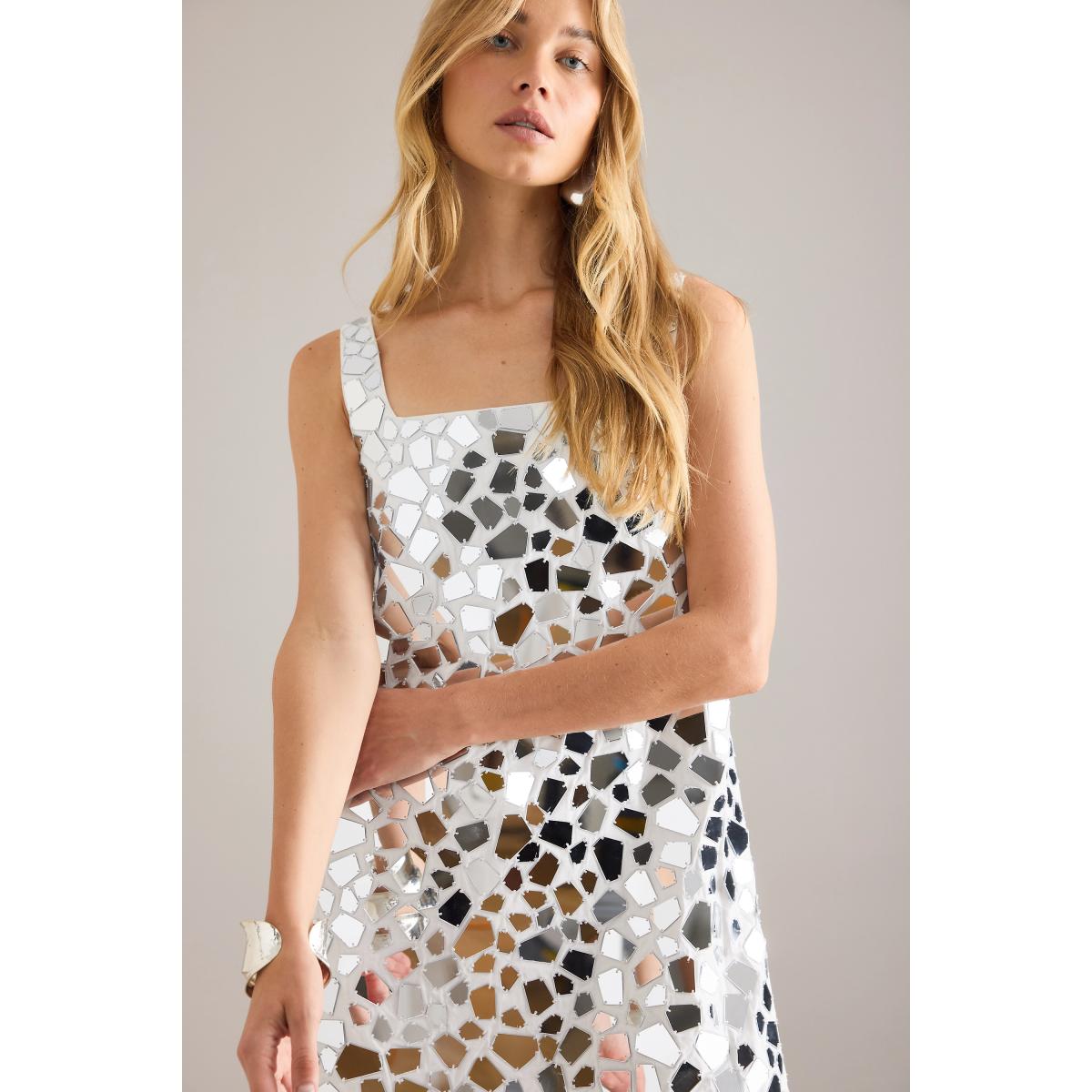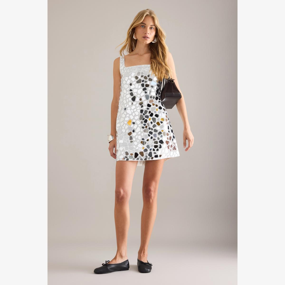 The mini dress, often called the mirror mini, is a fun, contemporary piece that works well in casual or youthful interiors. Its playful, reflective pattern makes it a versatile accent in spaces with modern or eclectic vibes, especially when paired with metallic or glossy decor. When styling this mirror, consider placing it in a dressing area or a bedroom where its reflective qualities can add brightness and practicality. To create a balanced look, pair it with minimal furniture and let the mirror be the focal point; it’s perfect for adding a bit of personality and a touch of glamour without overwhelming the space.