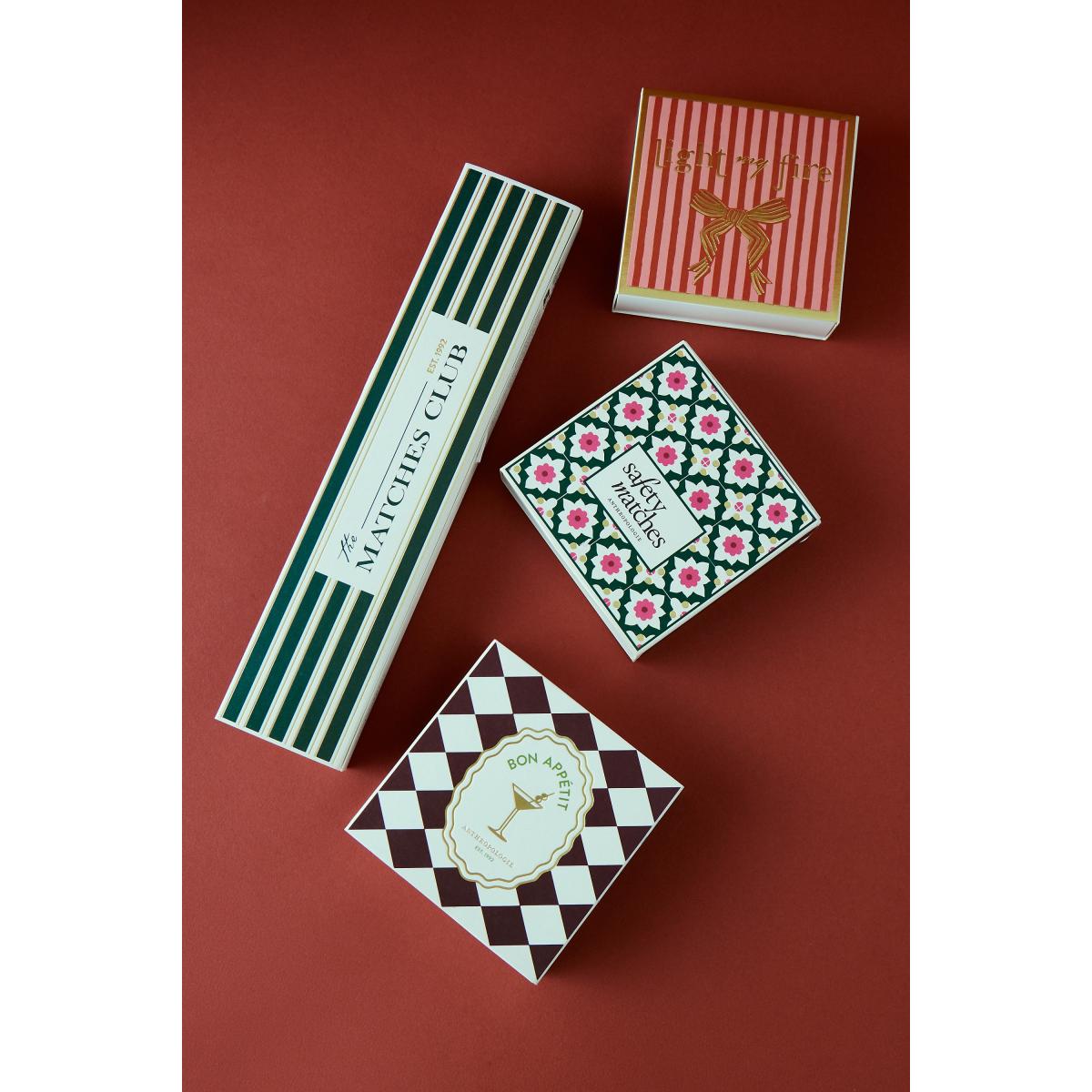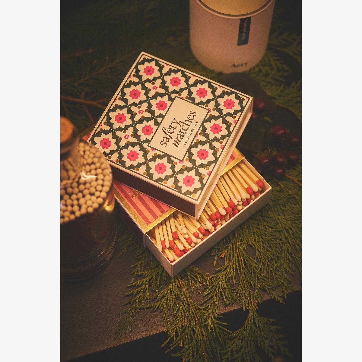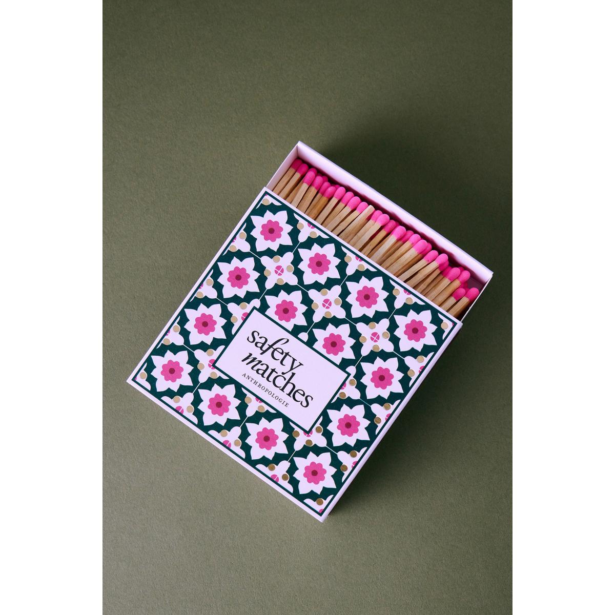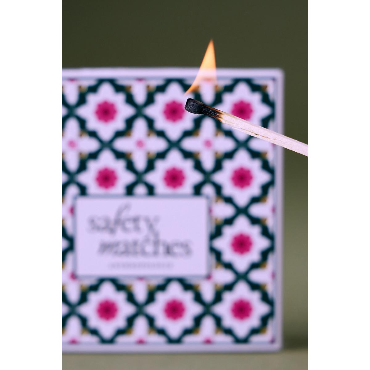 A unique, practical gift or a charming decorative accessory for side tables or mantelpieces, this matchbox is sure to spark joy! The beautiful tile-printed box with gold detailing is filled with colourfully tipped luxury safety matches. Safety Matchbox by Anthropologie