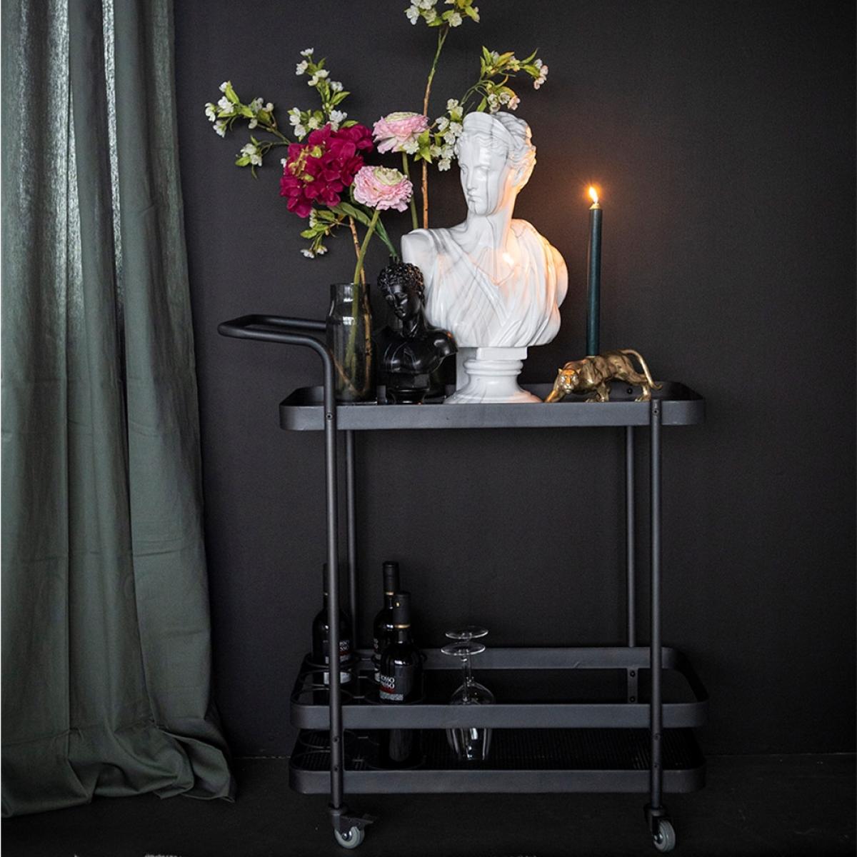 I love the Boo Rodando Drinks Trolley for its sleek yet functional design that easily elevates a variety of interiors, from modern minimal to eclectic schemes. Its black frame and simple lines give it a versatile edge, making it a great choice for adding an organised yet stylish touch to living rooms, dining areas, or even home bars. Practical styling tips include using it to showcase statement glassware or decanters, adding fresh flowers or decorative objects on top for visual interest, and incorporating a few colourful bottles to create a curated, inviting vibe. It works particularly well in spaces with dark or matte finishes, or as a contrast in lighter interiors, bringing modern sophistication with minimal effort.
