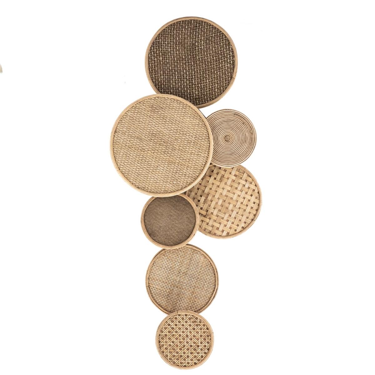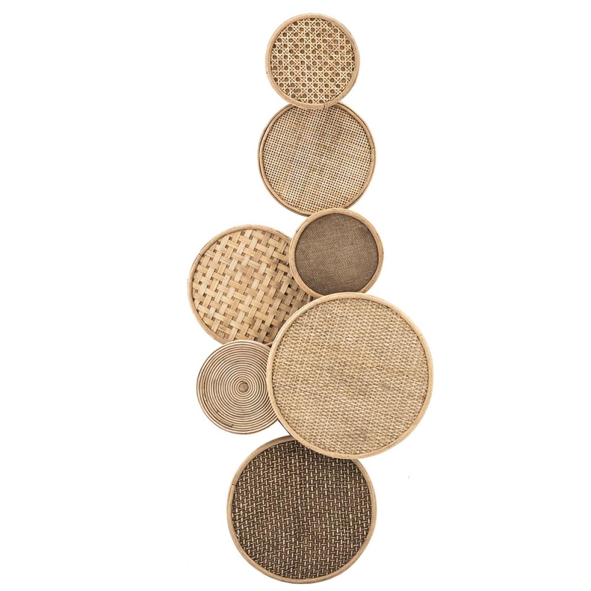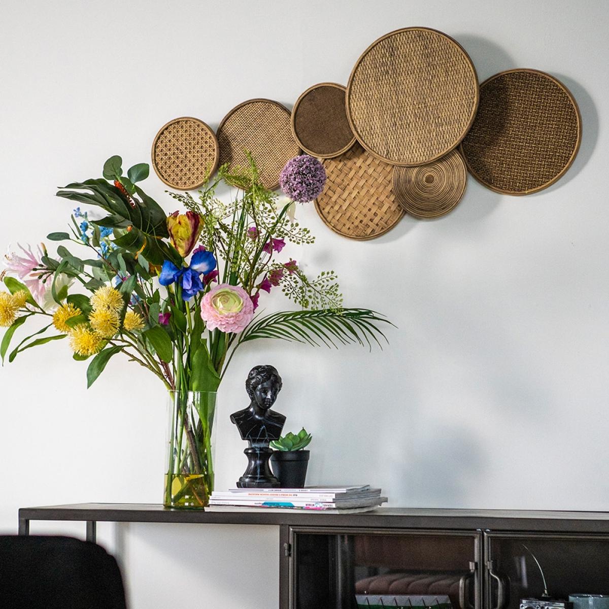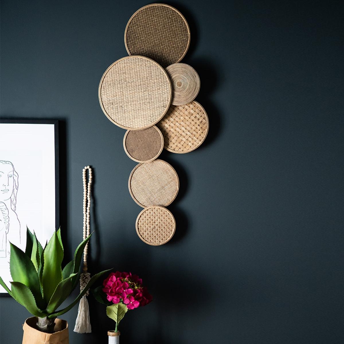 Do you have an empty wall that's screaming out for something eye catching, well look no further the Round & Round Wall Art from By Boowill have you running in circles. Beautifully crafted from a mix of natural materials including rattan and bamboo. Each circle is made up of different weaves and textures adding to the interest of this piece. The rattan trend is here to stay so why not add a piece to your home!.