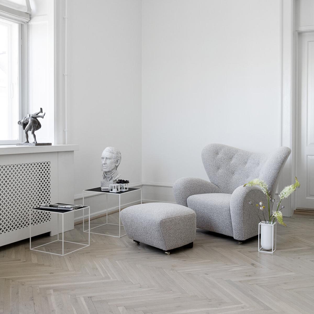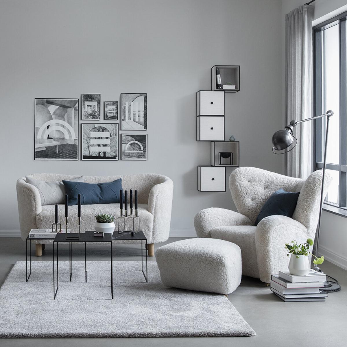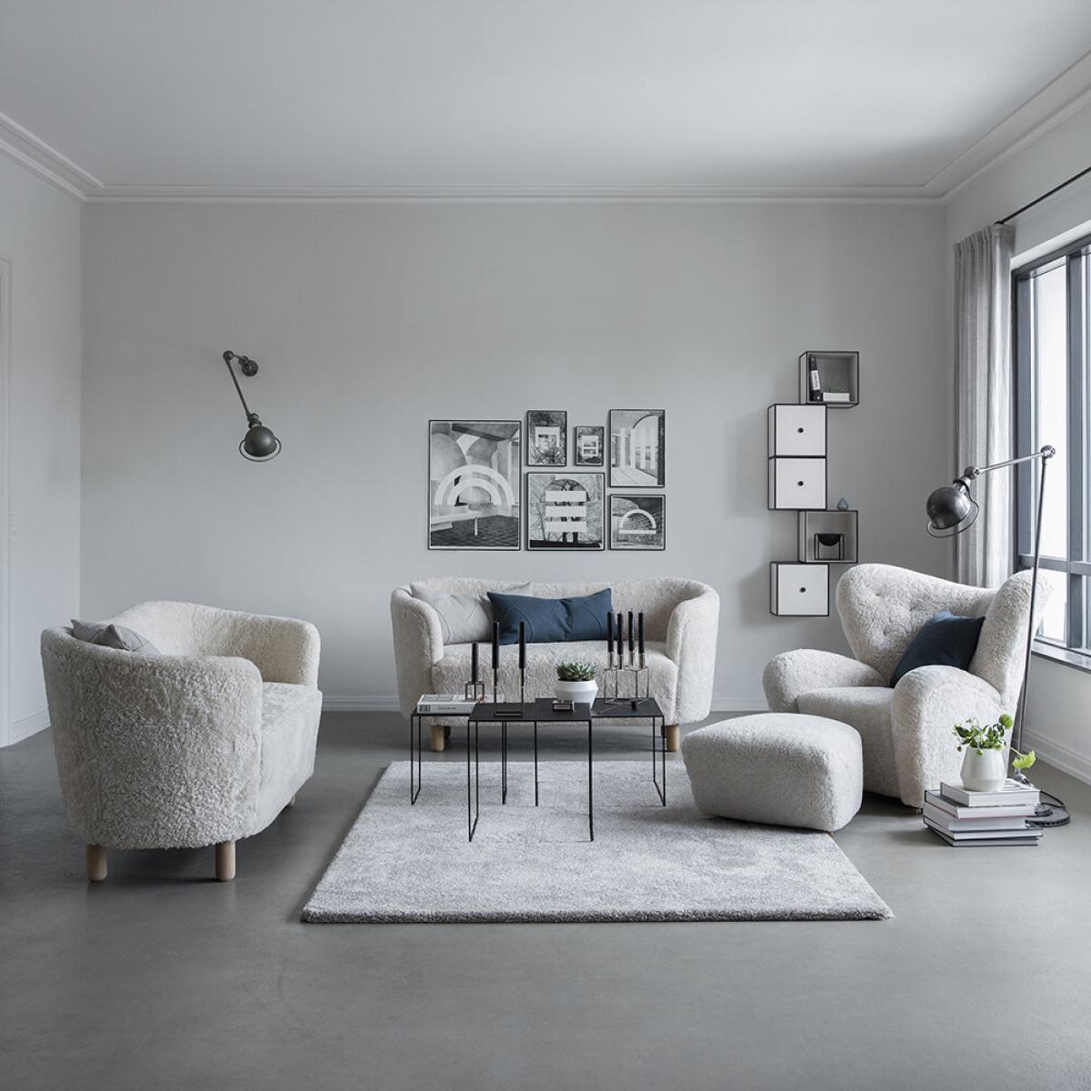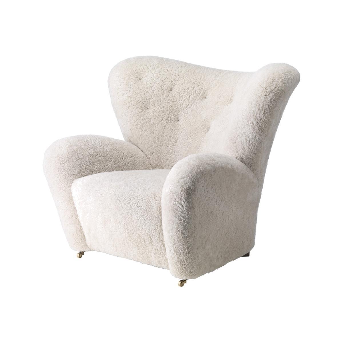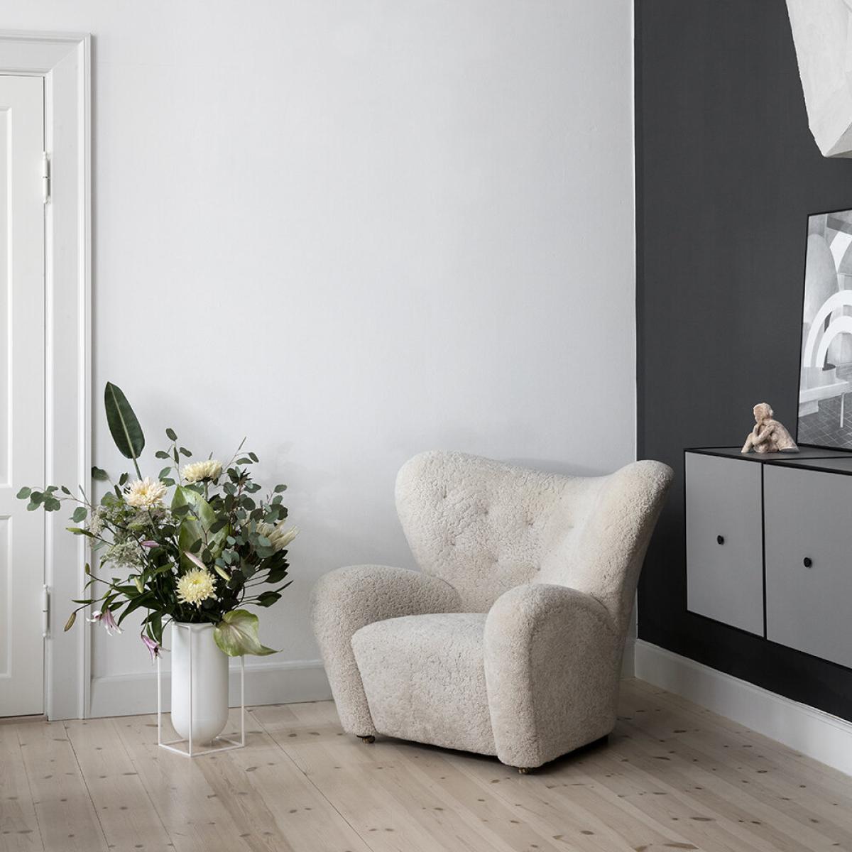 Inject timeless style into your home with The Tired Man Chair from By Lassen. Designed by Flemming Lassen, The Tired Man is characterised by organic, bearlike shapes. With its curved form and voluminous armrests, this luxurious piece has been described by Lassen himself to feel "as warm and safe as a polar bear cub in the arms of its mother in the middle of the ice cap. ". Please note, due to the natural material used, the colour of the sheepskin may vary slightly between the chair and the footstool.