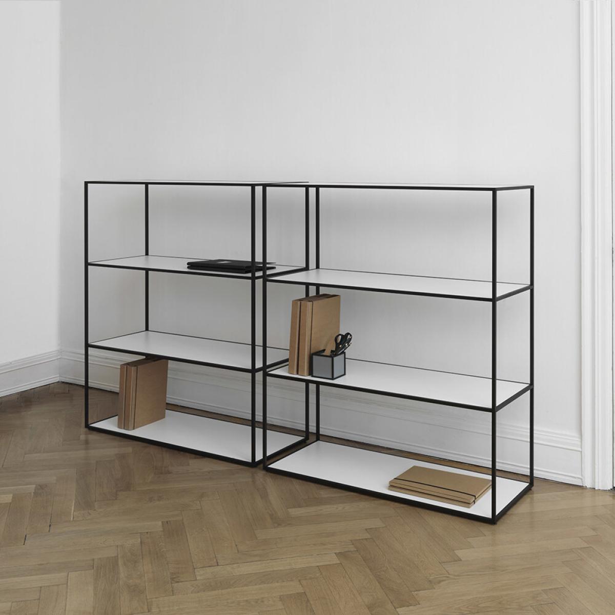 Accentuate your interior with this Twin Bookcase from By Lassen. Made from steel, this two-tone design provides a unique space for your favourite home accessories. A practical and stylish piece that can be used in any room to achieve an aesthetically pleasing look. Key features: * Material: lacquered steel, laminate * Dimensions: 124x98x42cm * Black and white colourway * Sleek and simple design * Minimalistic aesthetic