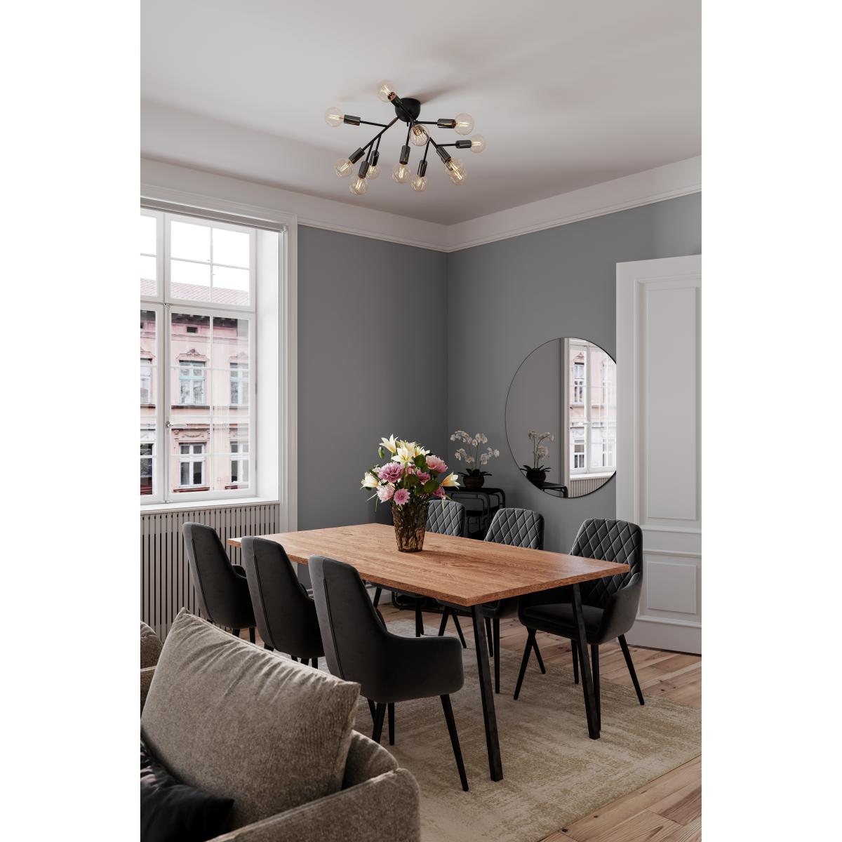 The Heroes ceiling lamp from By Rydéns is a gorgeous lamp that becomes a compelling and powerful presence in any room. The lamp is made of lacquered metal with brass-coloured brackets and consists of several branching arms. The fixture has room for a full 12 light sources that come together to put on a radiant display when lit. The Hero is a light for the truly bold. The lamp is best suited for larger rooms and in spaces with higher ceilings.