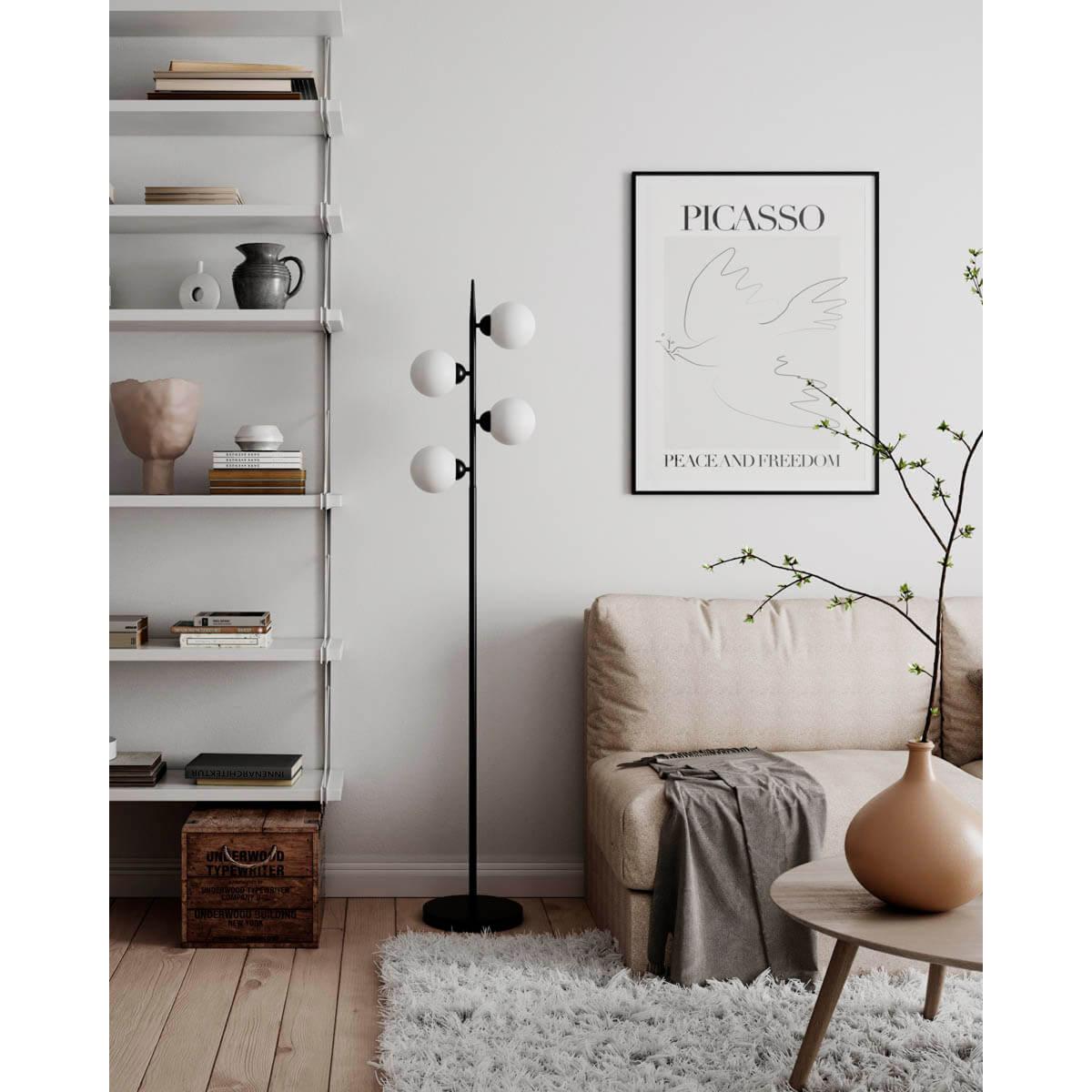 I love this floor lamp for its sleek, modern silhouette that works well in contemporary and minimalist interiors. Its matte black finish makes it versatile, providing a striking contrast in light-coloured rooms or blending seamlessly into darker palettes. The five globe bulbs offer ample, warming illumination, perfect for creating a cosy atmosphere or adding functional task lighting in living rooms or bedrooms. For styling, consider placing it beside a neutral sofa or accent chair for a layered look, and ensure the cord is discreetly managed to keep the clean lines intact. It's a practical choice that brings both form and function, elevating the overall aesthetic without overwhelming the space.