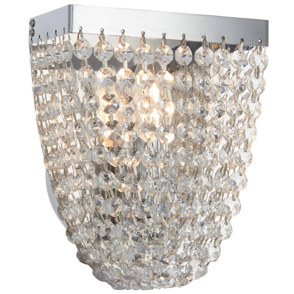 Glamorous wall light boasting a polished chrome finish. A stunning addition to your home, the Byres Wall Light is a gorgeous piece from Pagazzi Lighting. Boasting a polished chrome finish, the light bulb is housed within a shade made of swooping, clear crystal glass droplets. It is perfect for use in lounges, hallways and bedrooms.