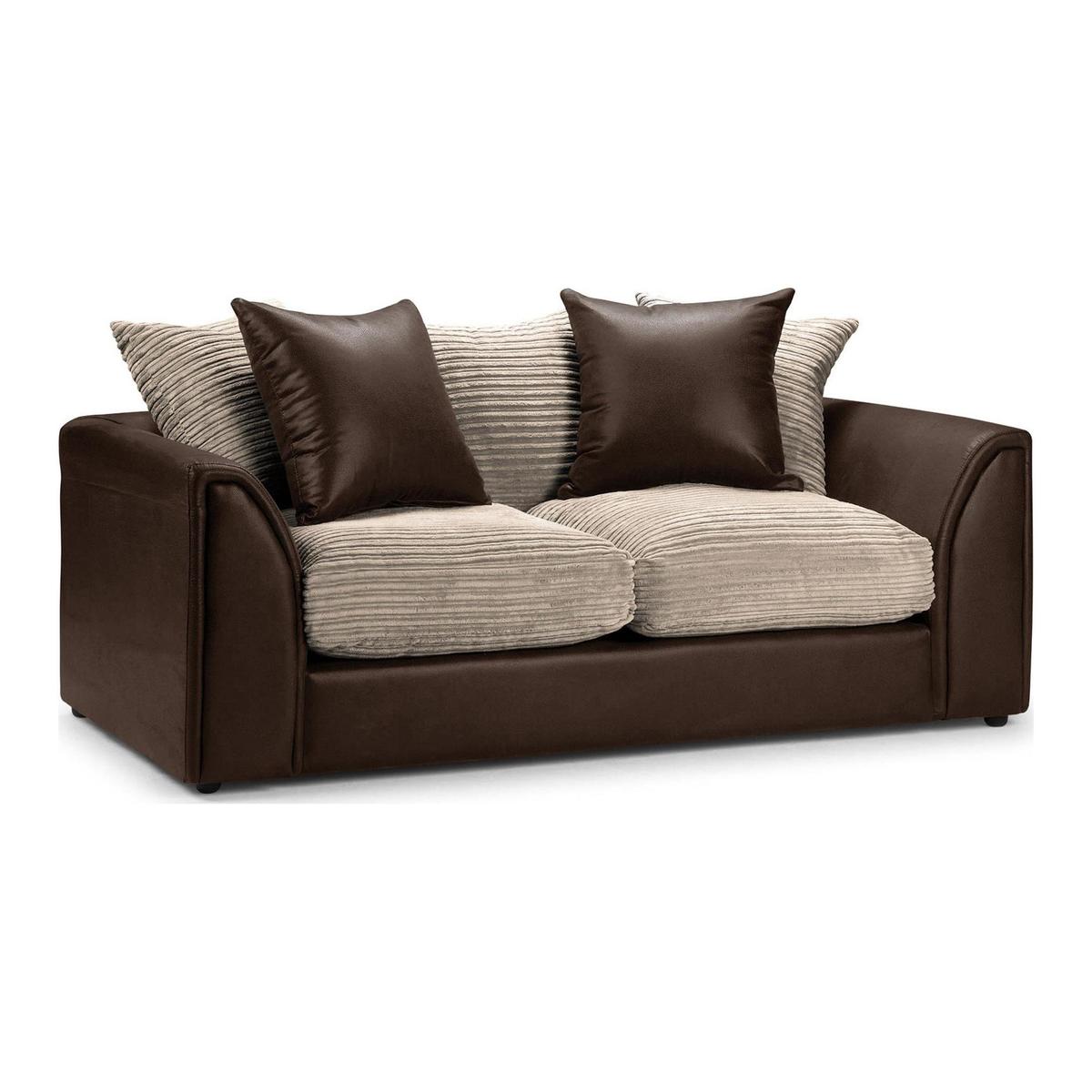 A contemporary 3 seater sofa that combines jumbo cord fabric with a leather-effect finish for a warm, relaxing look and feel.\nCombining jumbo cord fabric with a stylish leather-effect finish, the Byron 3 Seater Sofa has an elegant look with a relaxing feel. \n\nThe deep fibre-filled seat and scatter back cushions make this sofa feel as warm and comfortable as it looks. With a choice of neutral colours, the Byron 3 Seater Sofa will bring style and luxurious comfort to any living room.\n\n\n- Height: 77cm\n- Width: 179cm\n- Depth: 88cm\n- Seat Depth: 56cm\n- Seat Height: 44cm\n- Seat Depth: 72cm\n\nPlease note, unfortunately we cannot deliver this item to the Channel Islands.\n\n[Click here](https://www.dunelm.com/infodocs/downloads/Furniture-Sizing-Guide.pdf) to check out our handy sizing guide to help you find out if you’ll be able to get your new furniture into your home.
