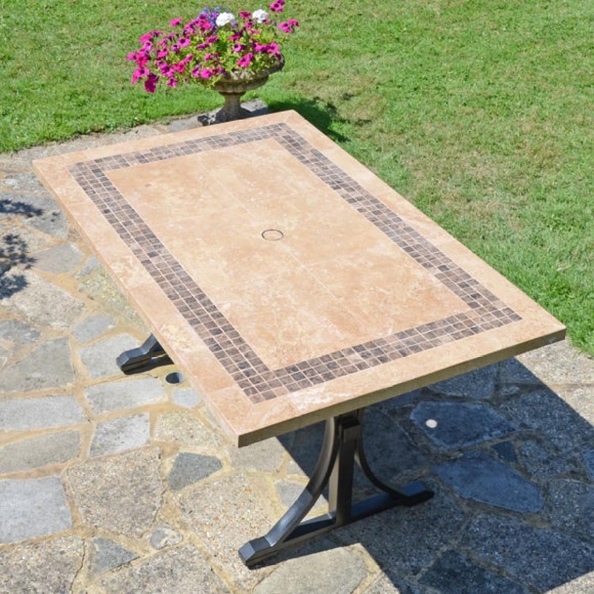* Hand-laid marble tiles * Classic mosaic border design * Natural colourway * Seats 6 comfortably * Sturdy steel frame The Byron Manor Chicago Rectangular Dining Table brings natural elegance to any setting with its hand-laid marble stone tiles. Finished in warm brown tones and framed with a classic mosaic border, it adds a touch of character to both indoor and outdoor spaces. Its sturdy build and generous size make it ideal for seating up to six. Minimal assembly means it’s ready to enjoy with little fuss. Whether hosting lunch on the patio or dinner in the dining room, it’s a dependable and stylish choice, designed to stand the test of time, in every season.