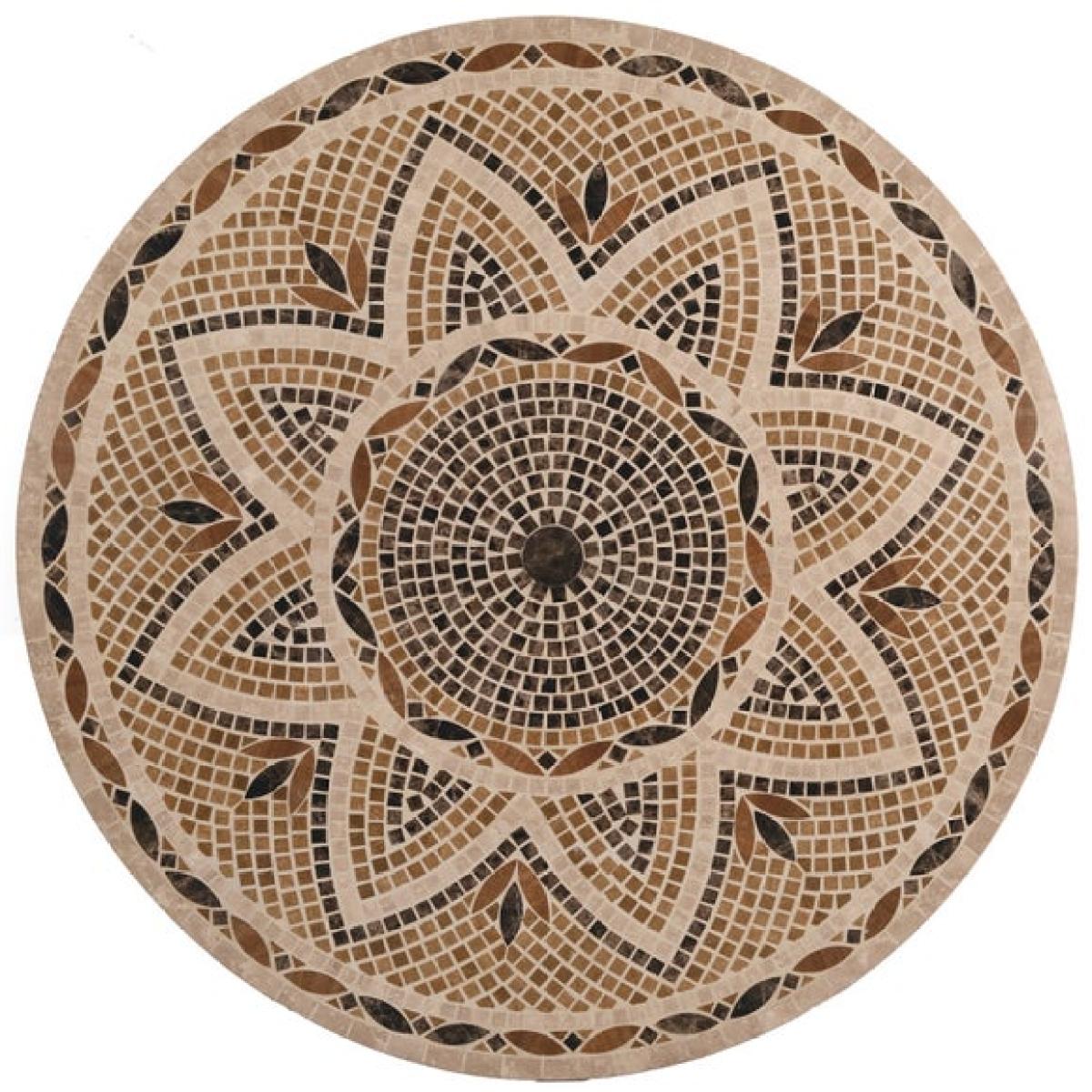 * 110cm diameter * Central parasol hole * Intricate Travertine marble top * Sturdy steel frame The Byron Manor Madison Round Dining Table offers a striking mosaic top made from travertine marble in rich browns and natural shades. Its black pedestal base includes a handy central parasol hole, ideal for sunny lunches or shaded evening meals. With a generous 1.1m diameter, it seats four comfortably without feeling crowded. Steel legs with adjustable feet keep things stable, even on uneven ground. Designed for both beauty and practicality, it suits patios and dining rooms alike. A statement piece that’s ready for any occasion.