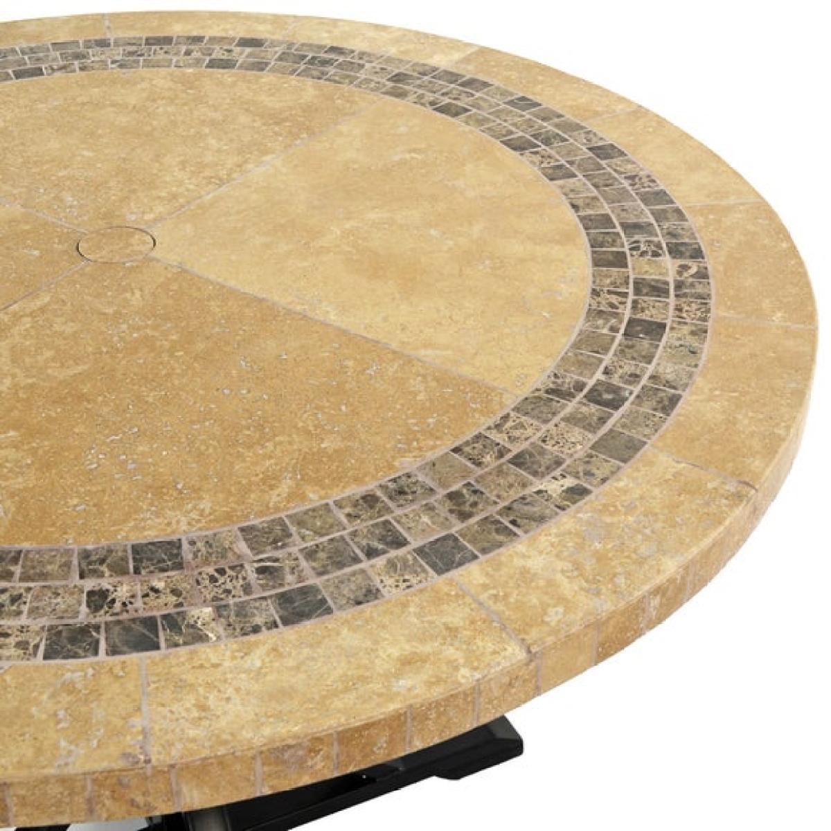 * 110cm diameter * Natural marble stone top * Classic mosaic border * Sturdy steel frame * Seats 4 The Byron Manor Victoria Round Dining Table features a hand-laid marble stone top in soft beige, bordered with a classic brown mosaic for a timeless look. Its 1.1m diameter offers generous space for four, whether dining indoors or out. Built to last with a sturdy, durable design that handles everyday use with ease. The natural stone finish ensures each table is unique. With minimal assembly required, it’s ready to enjoy in no time, and is a practical and elegant choice for relaxed, year-round dining.