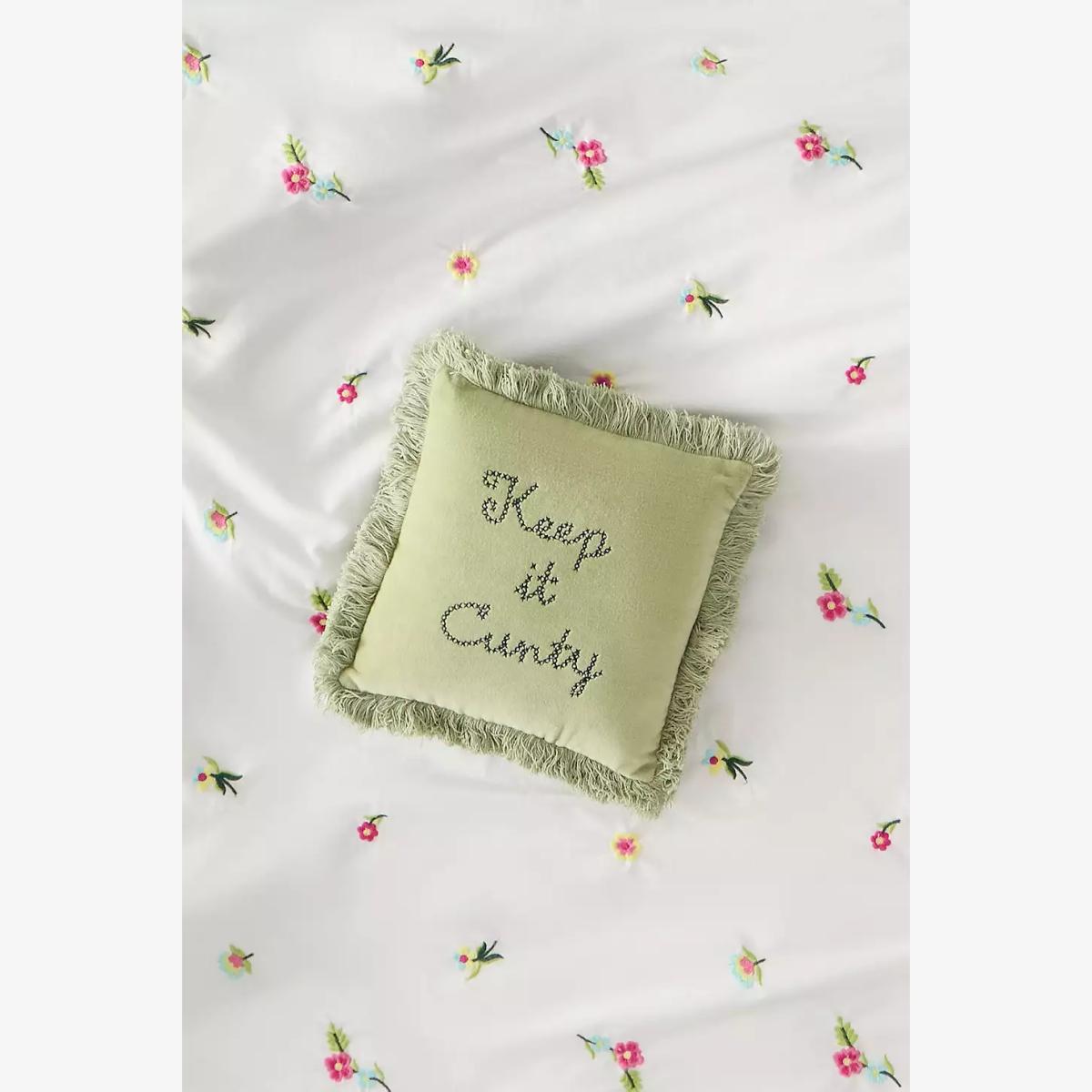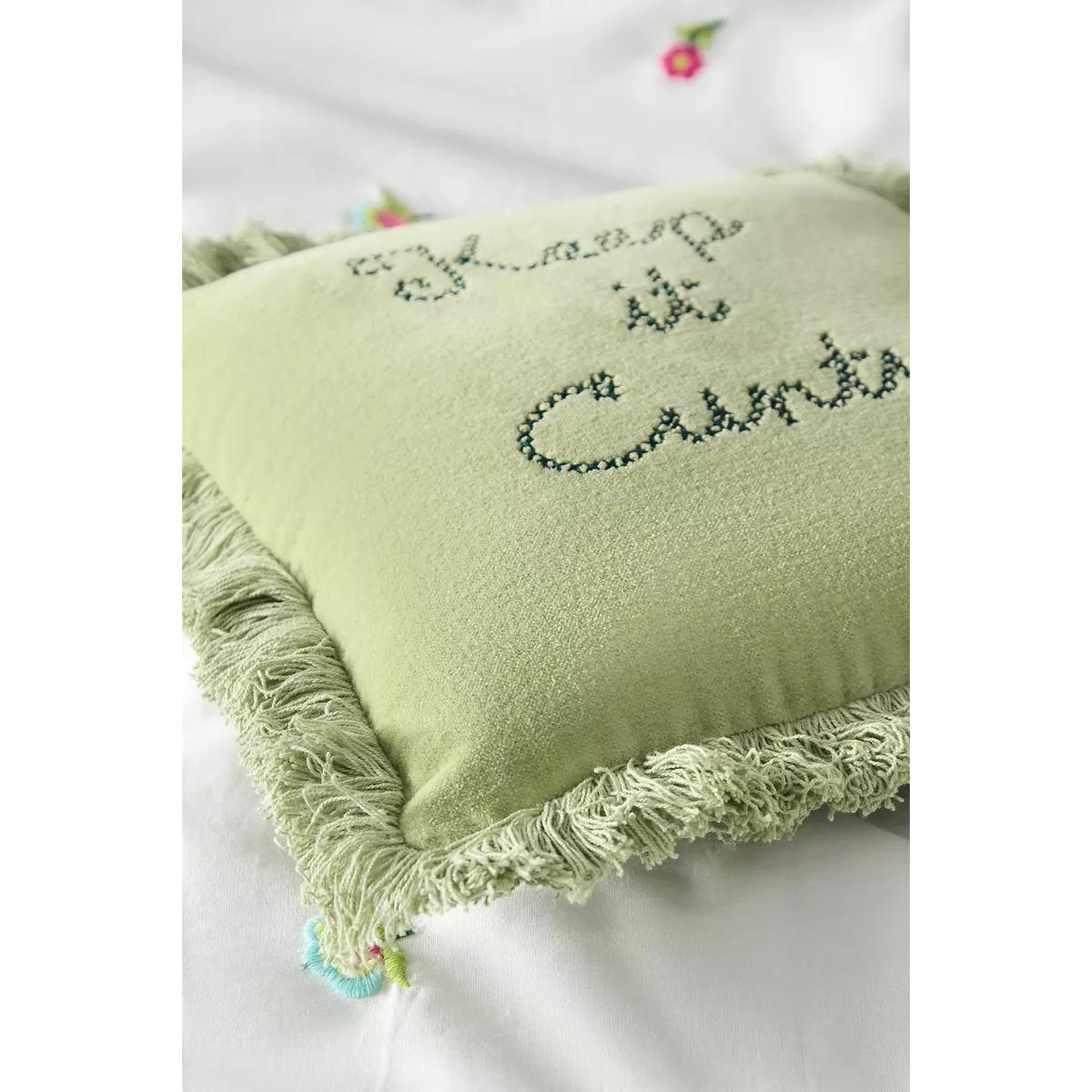 Elevate your space with this sassy green cushion. Crafted from cotton with a soft filling, complete with an embroidered 'Keep it C*nty' slogan and fringed edges. **Content + Care** \- 100% Cotton cushion \- 100% Polyester filling \- Spot clean \- No removable inner cushion **Size** \- 25.5 x 25.5cm
