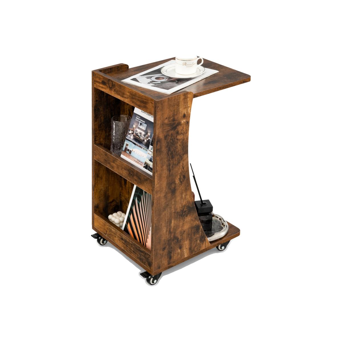 I’m a big fan of this C-style side table in coffee wood finish because it slots neatly beside a sofa or armchair without eating into your living space. The warm, slightly distressed look works equally well in industrial, Scandi or rustic schemes, and the tiered shelves are perfect for stashing magazines, remote controls or a small plant. Styling-wise, keep the tabletop clear for your morning cup - add a coaster and a slim vase or candle to maintain a sense of calm. Use the lower tier for books stacked vertically and the middle shelf for tech chargers or a decorative box, then simply roll it over whenever you need more surface.