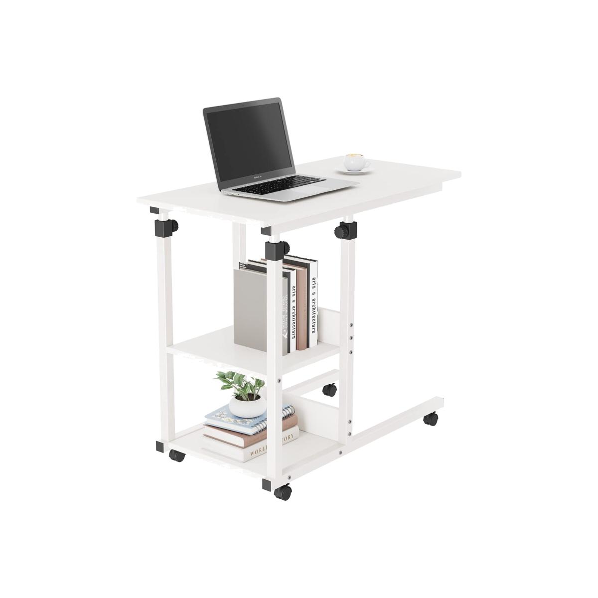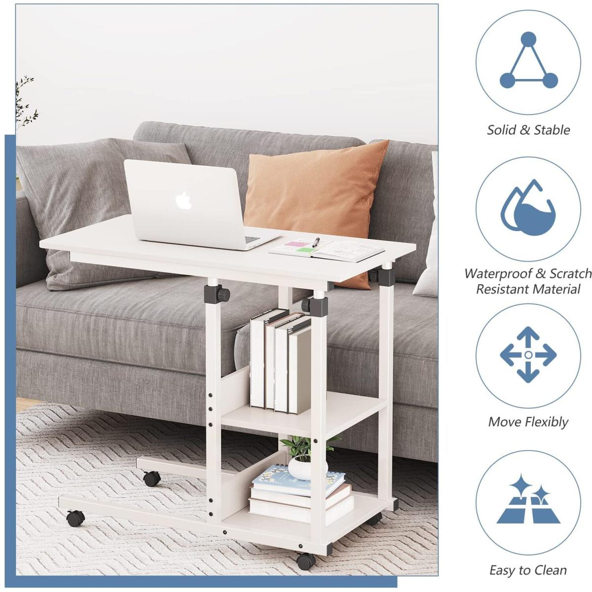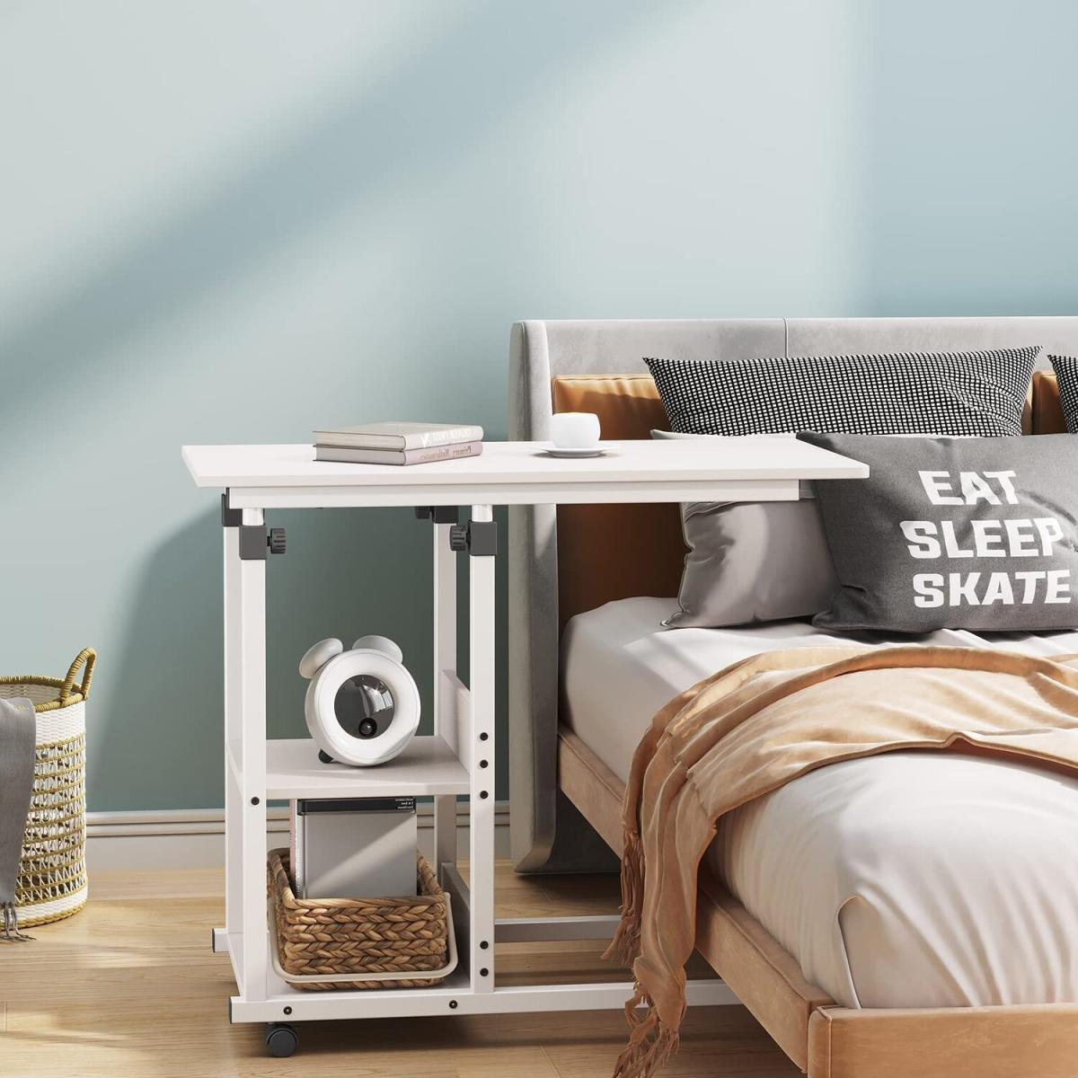 C Shaped Side Table Height Adjustable Mobile Rolling Laptop Table - White