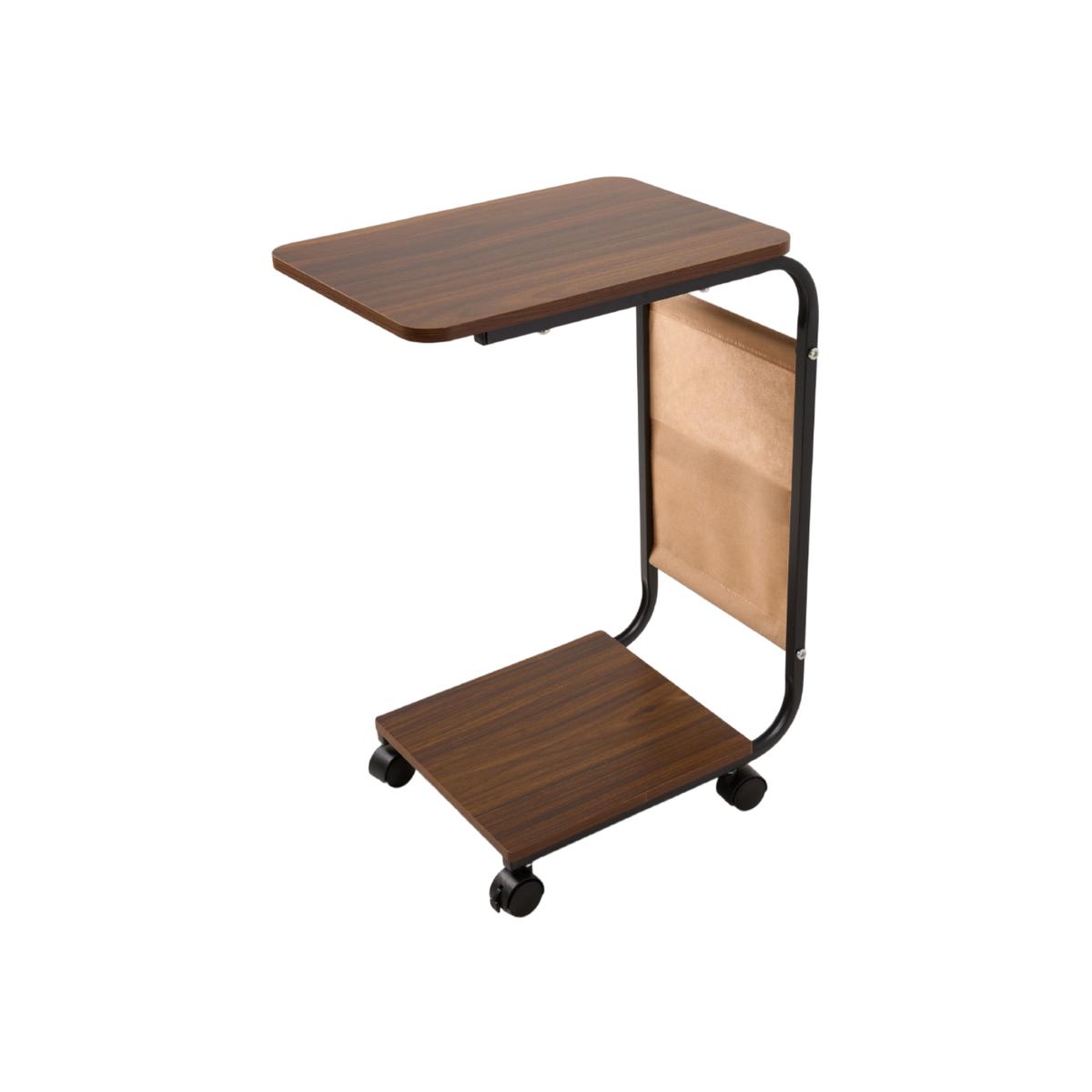 C-Shaped Side Table with Storage Pocket - Dark Walnut & Black