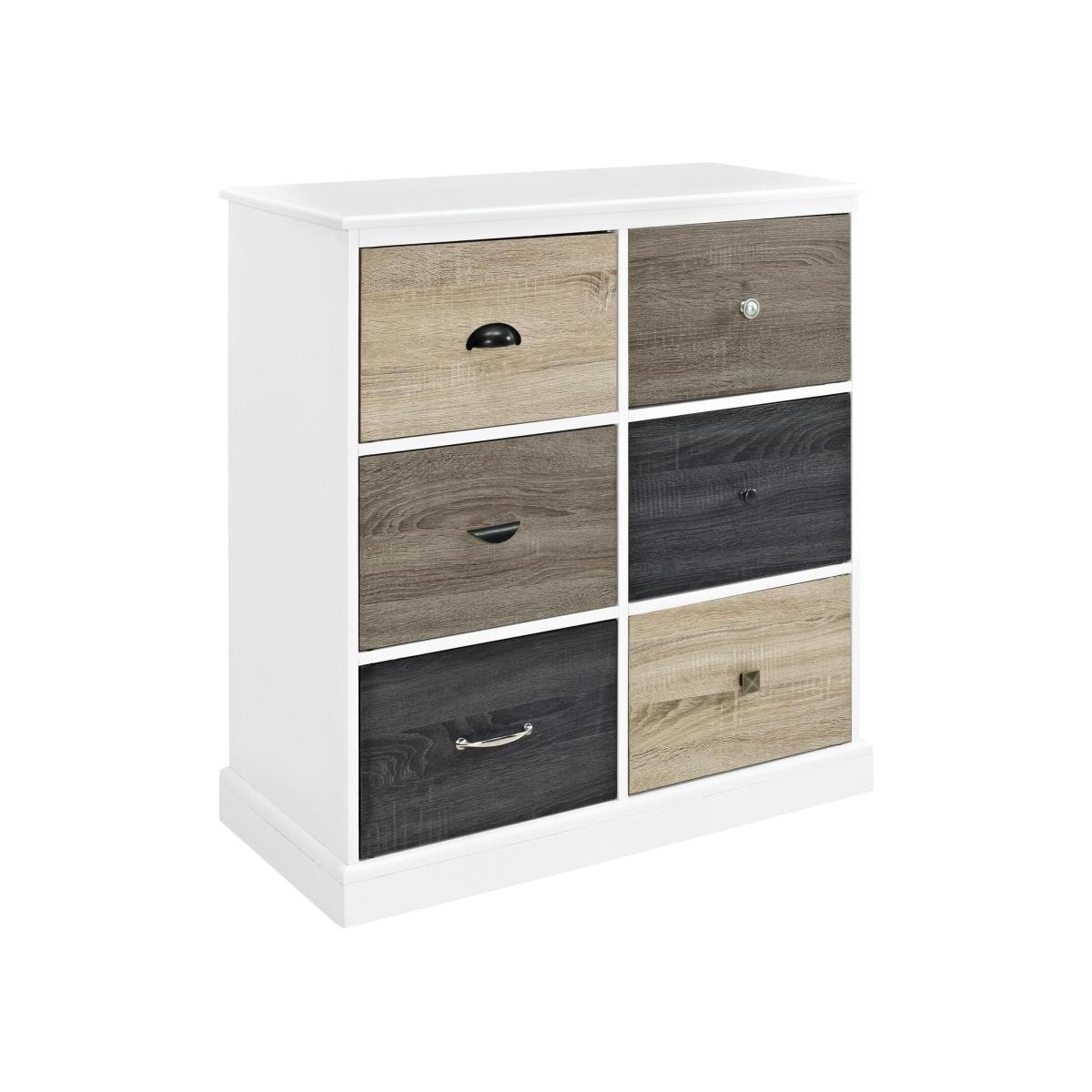 Transform your living room, bedroom or office with the Mercer 6 Door Storage Cabinet with Multicolored Door Fronts. The cabinet features 6 spacious drawers, each finished with a slightly different colour to create a sophisticated look for a modern or transitional scheme. Additionally, 6 knobs of varying styles are interchangeable to help fashion a customized look. In the living room or office, utilize the storage space to conceal books, DVDs, glassware and toys. You can also use this unit in the bedroom to stow away clothing and blankets.