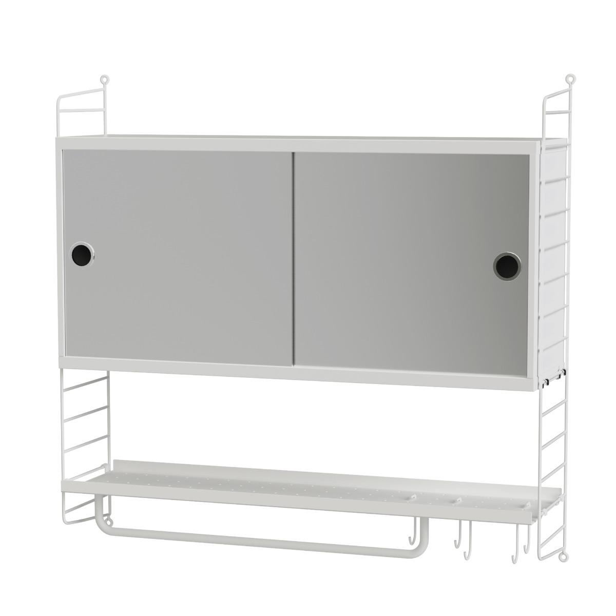 Originally designed in 1949 by architects Nisse and Kajsa Strinning for Bonnier's public library, the String Shelving System by String Furniture offers limitless possibilities for your home, including the configurable Bathroom A system. A modular system with multiple combinations fitting seamlessly together to fit your space, String Shelving is still crafted in Sweden to this day, using a distinctive runged powder-coated steel wall panel and slotting shelves. The Bathroom A unit also offers the option to include a cabinet with sliding mirror doors. A popular shelving system in mid-century Sweden, the String System is now renowned all over the world for its Scandinavian style, functionality and versatility. Winner of the German Design Award 2016, gold medal winner at the Milan Triennale 1954, and winner of the Good Design Long Life Award 2020, the String System has proved itself to truly stand the test of time. How to Assemble:. Cabinet and shelving system requires assembling. Please click to download the. Shelving assembly instructions. And the. Cabinet assembly instructions.