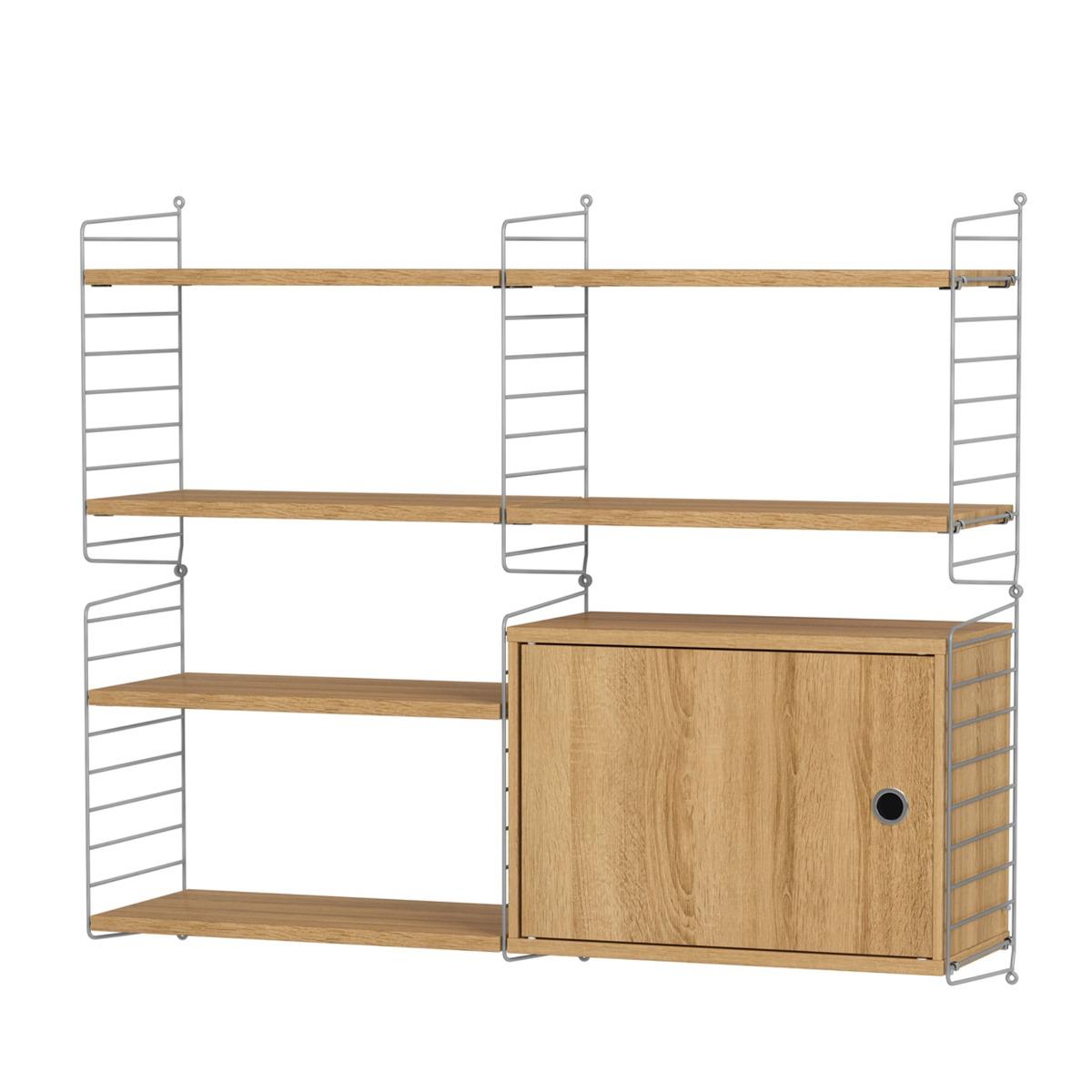 Originally designed in 1949 by architects Nisse and Kajsa Strinning for Bonnier's public library, the String Shelving System by String Furniture offers limitless possibilities for your home, including the configurable Living Room R system. A modular system with multiple combinations fitting seamlessly together to fit your space, String Shelving is still crafted in Sweden to this day, using a distinctive runged powder-coated steel wall panel and slotting shelves. The Living Room R unit also offers deep shelves and a swing-door cabinet for hidden storage. A popular shelving system in mid-century Sweden, the String System is now renowned all over the world for its Scandinavian style, functionality and versatility. Winner of the German Design Award 2016, gold medal winner at the Milan Triennale 1954, and winner of the Good Design Long Life Award 2020, the String System has proved itself to truly stand the test of time.