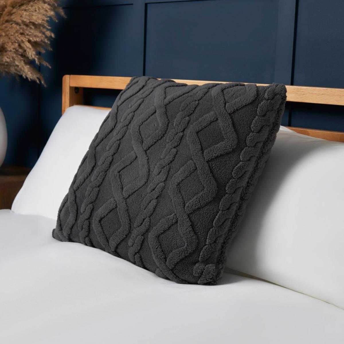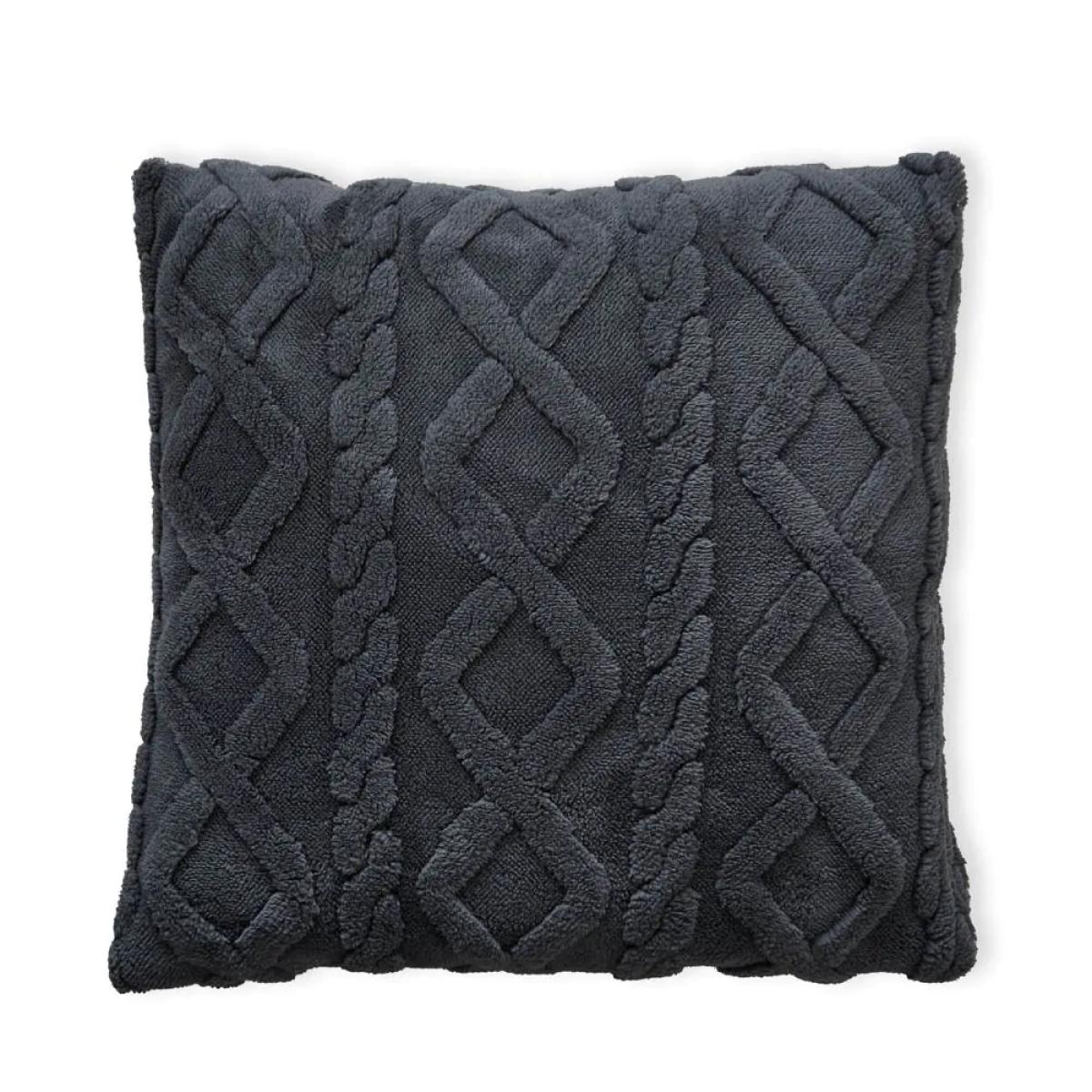 Add warmth and texture to your interior with the Charcoal Cable Knit Cushion. Its charming cable-knit pattern on both sides and the 45 x 45cm size make it a cosy addition to your home. The charcoal colour complements various decor styles, specifically darker themed interiors, ideal for styling in pairs on any sofa or bed.