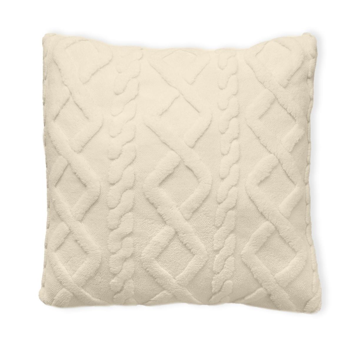 Enhance your decor with the Cream Cable Knit Cushion featuring a cosy cable-knit pattern on both sides. Its 45 x 45cm size ensures it fits perfectly on your sofa or chair, ideal for styling in pairs for a symmetrical appearance. The cream colour brings a sense of warmth and tranquility to your living space, looking perfect within scandi interior decor. 45 x 45cm size for a comfortable and decorative touch; Cream Cable Knit on both sides for a soothing and inviting ambience;Relaxing design that adds a cosy element to your home.