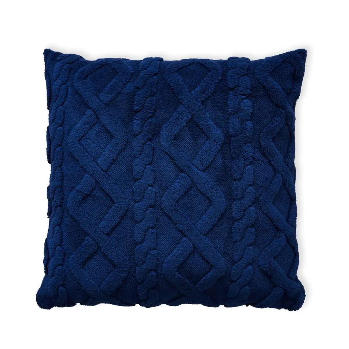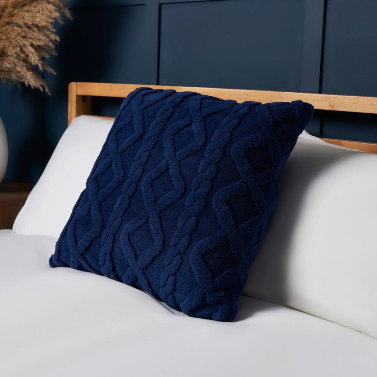 Inspire a nautical theme in your home with the Cable Knit Cushion with its timeless cable-knit pattern on both sides. The navy blue colour adds a pop of elegance to your decor, versatile to suit darker themed interior design and lighter, breezier colour schemes. Measuring 45 x 45cm, it's perfect for bringing a touch of classic comfort to your sofa or bed.