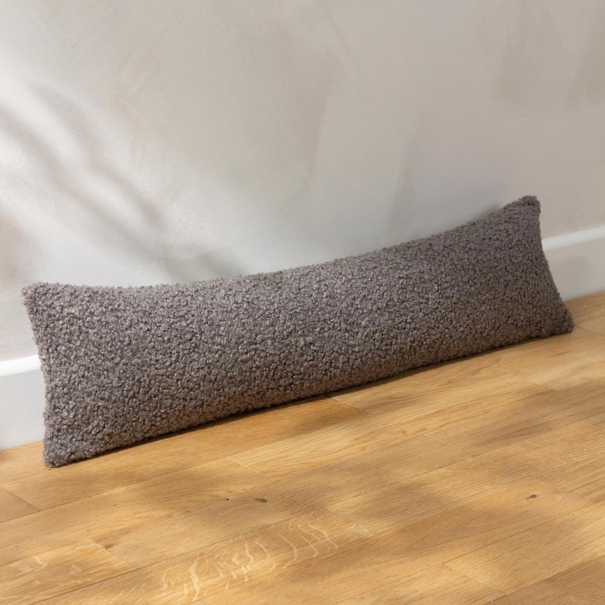 * Plain design * Boucle fabric * Made from polyester * Dry clean only Wrap your home in warmth and texture with the Cabu Boucle Draught Excluder. Featuring an ultra-chunky boucle shearling fabric, this cosy essential adds both style and function to your space. The reversible design and knife-edged border bring a refined touch, while the hidden zip fastening ensures a seamless look.