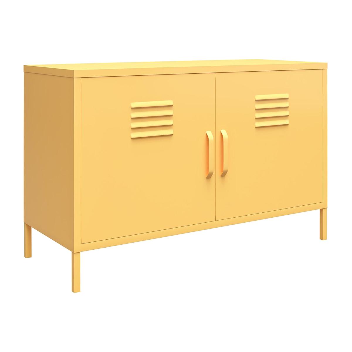 Get the perfect storage solution for any room in your house with the Novogratz Cache 2 Door Metal Locker Accent Cabinet Made of powder-coated metal, the bright color adds a fun pop of color while the metal makes it easy to clean spills with a damp cloth