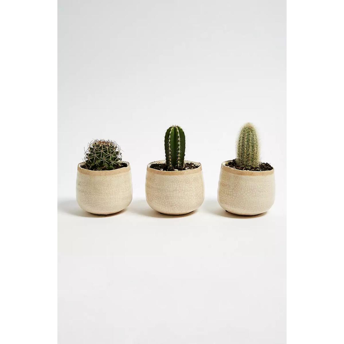 Adorable set of cacti that will perfect accentuate your living or work space. Please note: Each cactus mix is unique + your order may very slightly from what’s pictured here. **Care** \- Please ensure that you give your plant a little water soon after unpacking \- Requires minimal maintenance; water every 10-14 days \- Stored in mini plastic plots \-Keep in a warm place in full sun or partly shaded space \- For indoor use only **Content** \- Includes 3 cacti