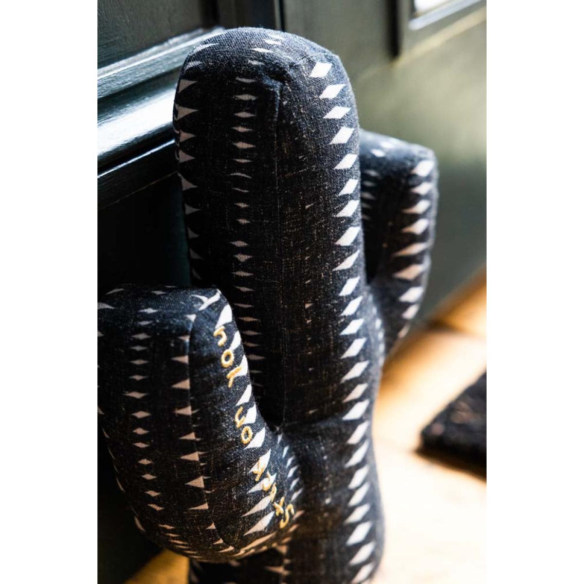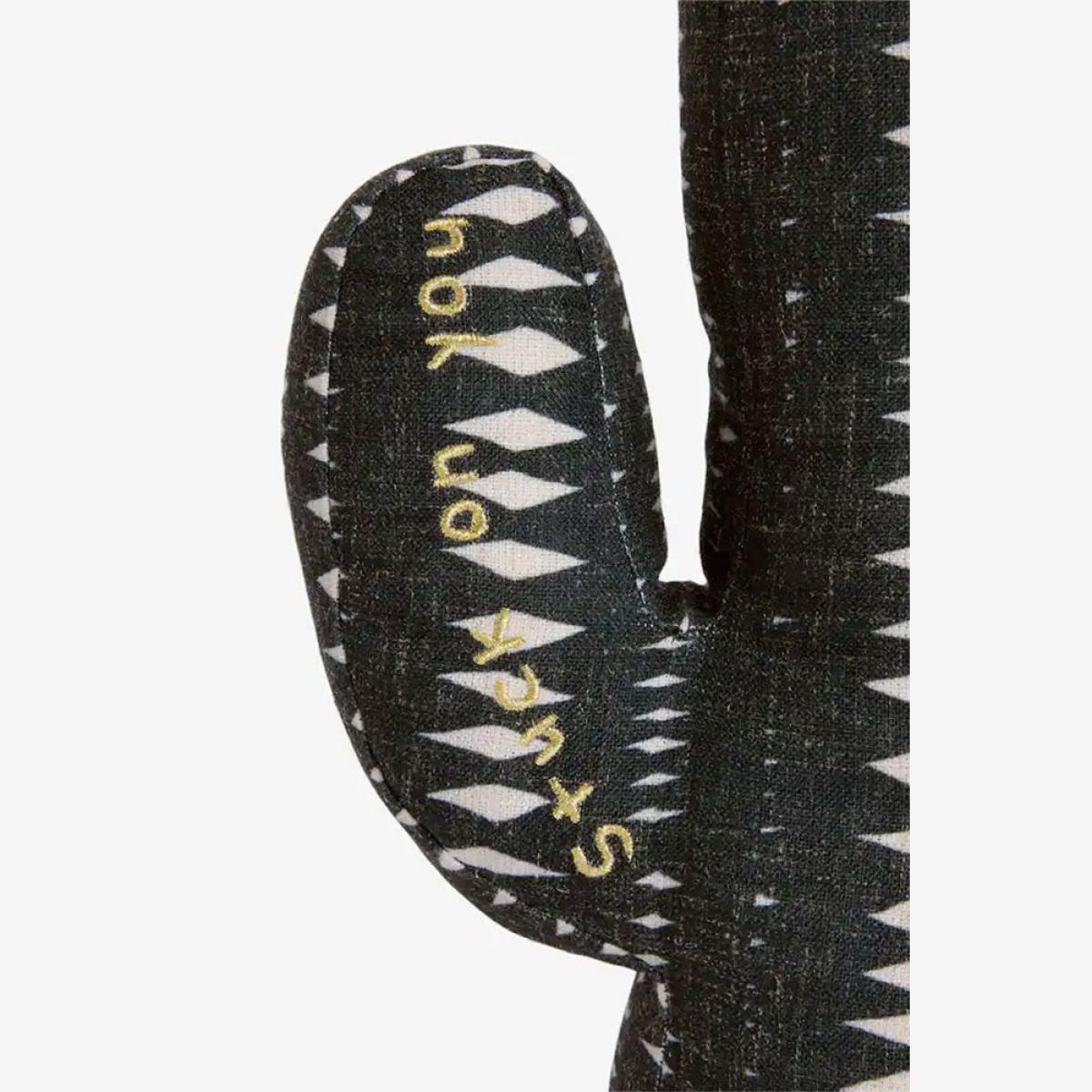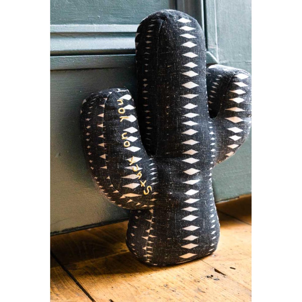 <!--td --> Say howdy to your new favourite home accessory! This cactus-shaped doorstopper is the epitome of cowgirl cool and functional home accessories. Crafted with a bold black and white geometric pattern, it’s got that rustic western vibe that’ll lasso in compliments faster than you can say “yeehaw.” But the real showstopper? The golden embroidered words “stuck on you” add just the right touch of sassy charm. It’s like a little love letter to your space, keeping your doors in place with style and personality. Whether you’re wrangling the breeze or just want to add a little Southwestern flair to your space, this cactus is up for the job. Perfect for ranch-inspired homes, boho hideaways, or literally anyone who enjoys a pop of Western whimsy. It’s one décor piece that’ll never leave you high and dry. - Cactus Doorstep - Measures: H31cm x W21cm x D9cm - Material: Polyester - Sponge Clean Only