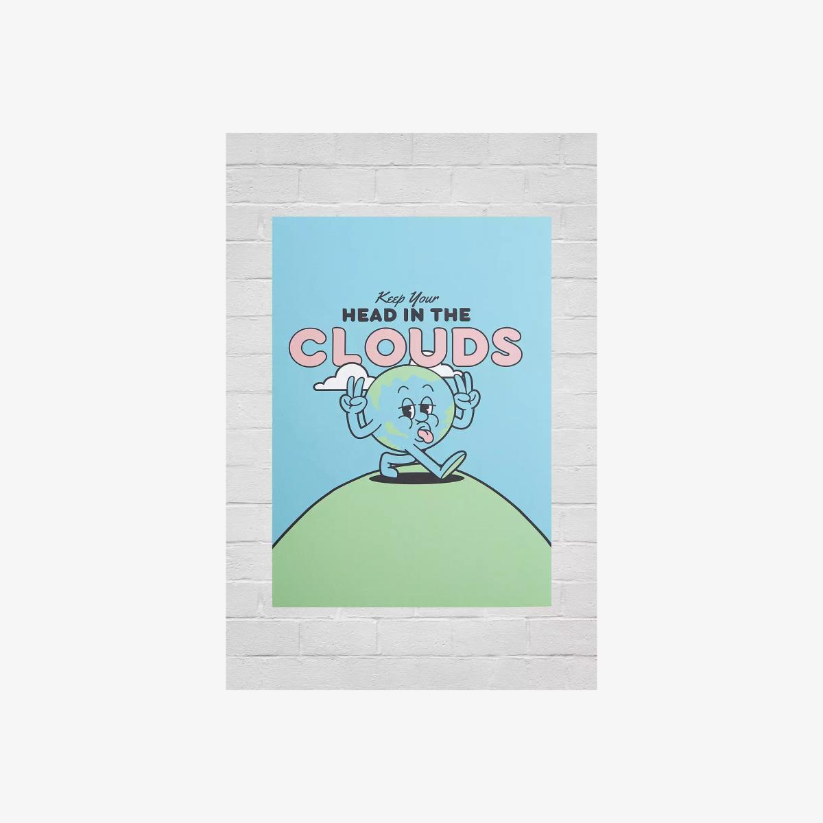 Live in your own world with this wall art print by Cactus Tree in your space. The fun illustrated poster features a 'Head in the clouds' motif and earth print. **Content + Care** \- Paper \- Wipe clean **Size** \- 30cm x 40cm